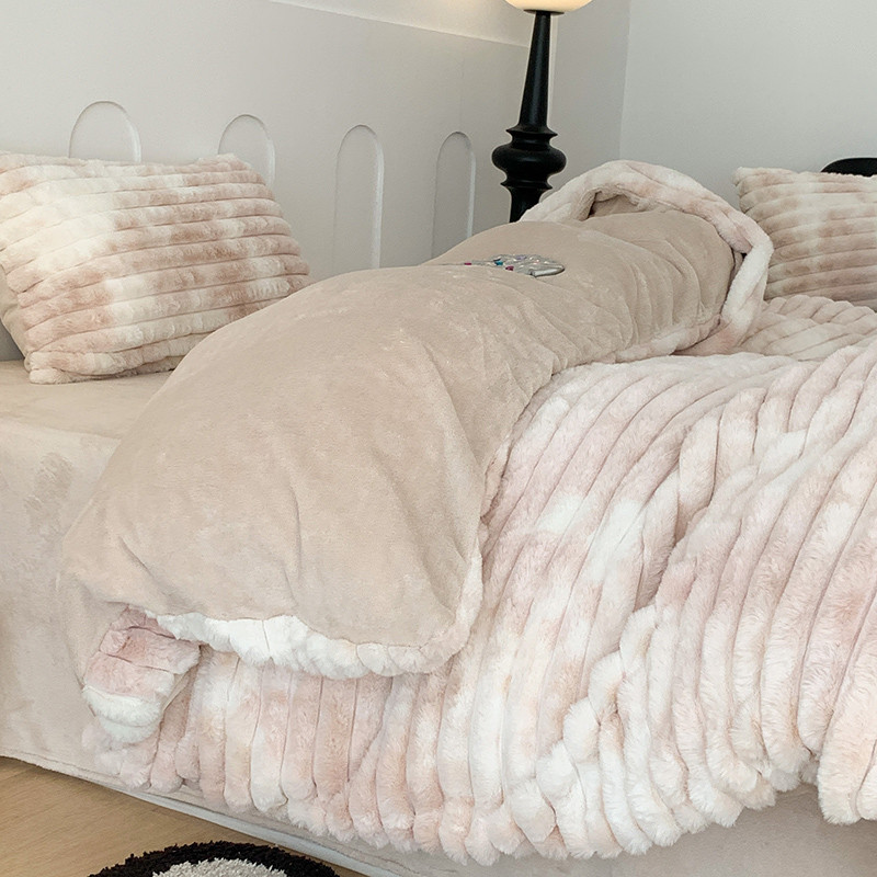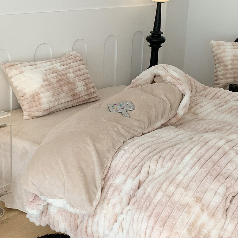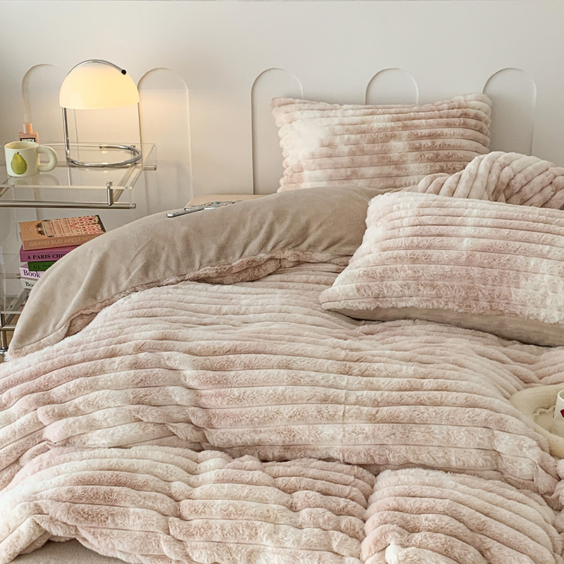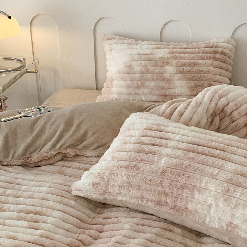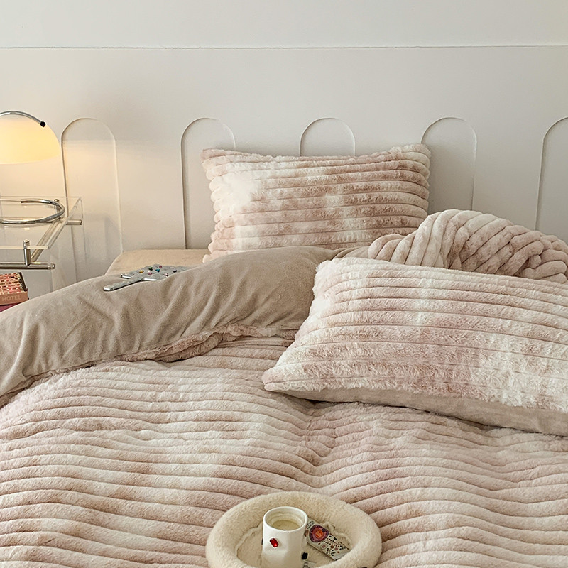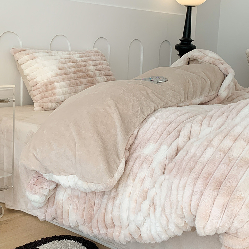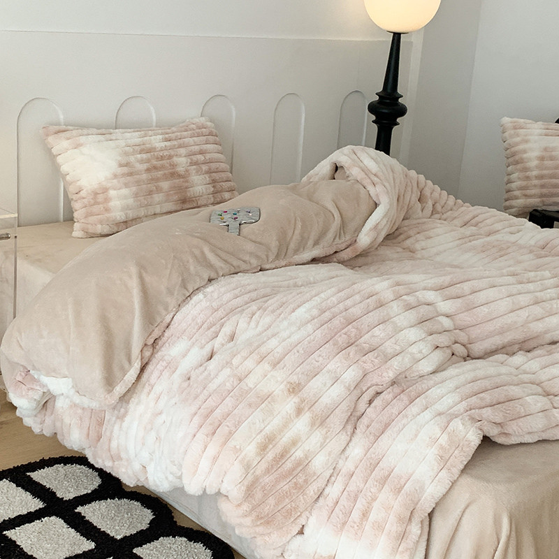 昔可家纺 2023新款ins风纯色兔兔绒兔毛四件套 琥珀扎染