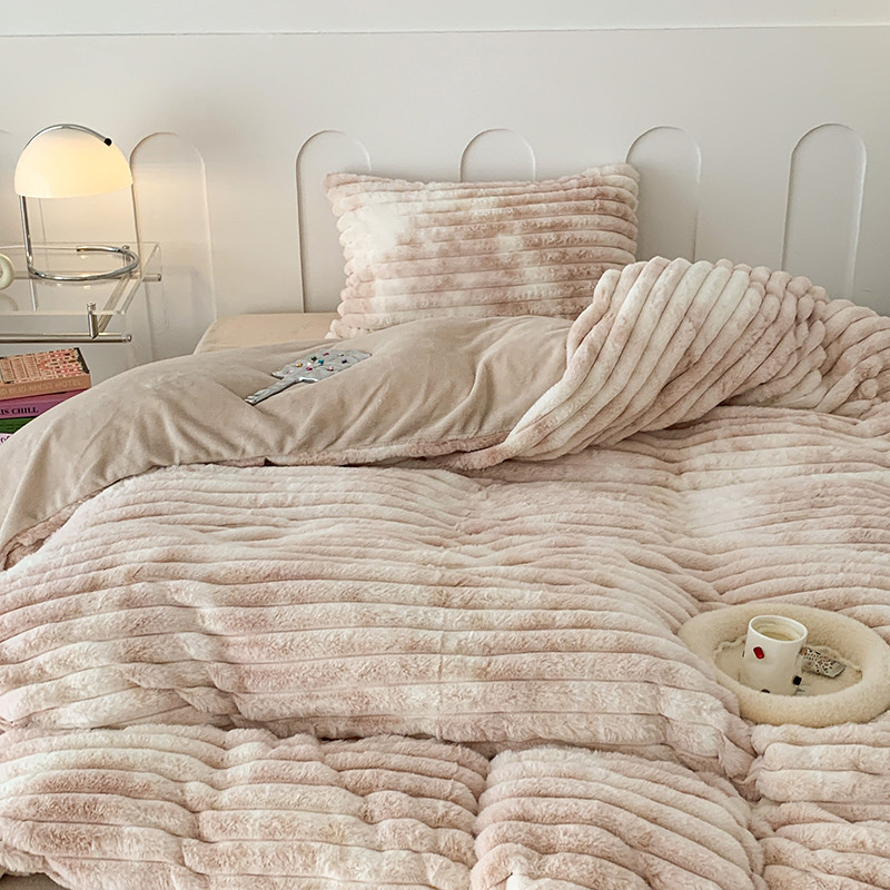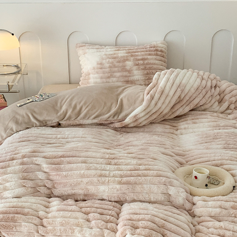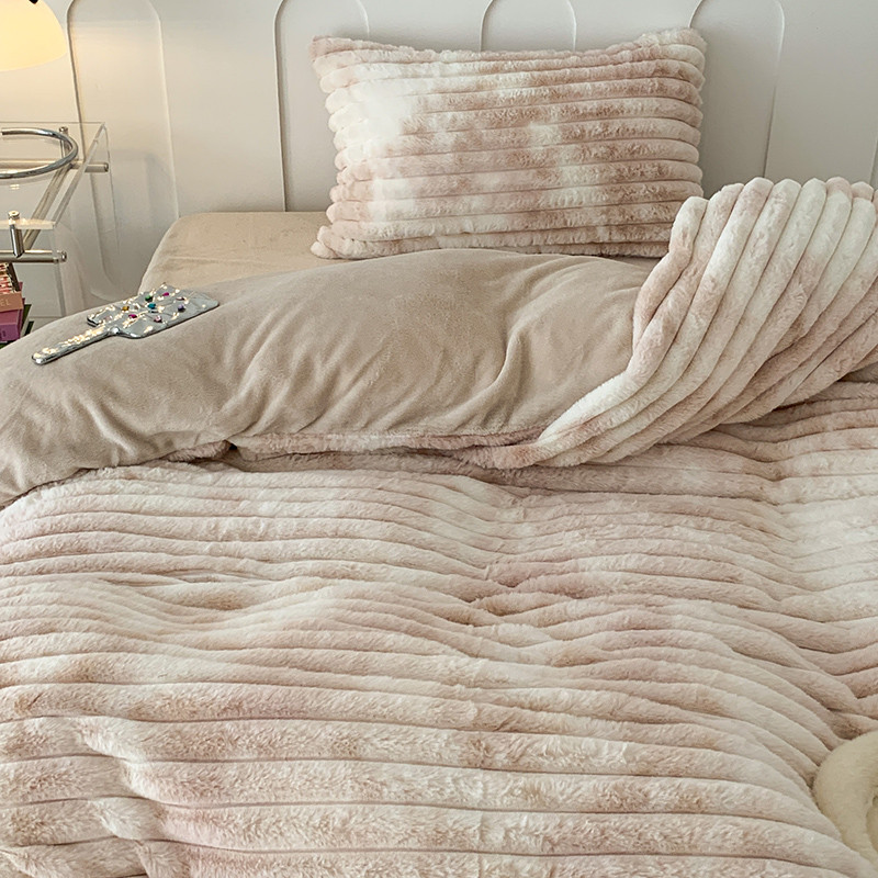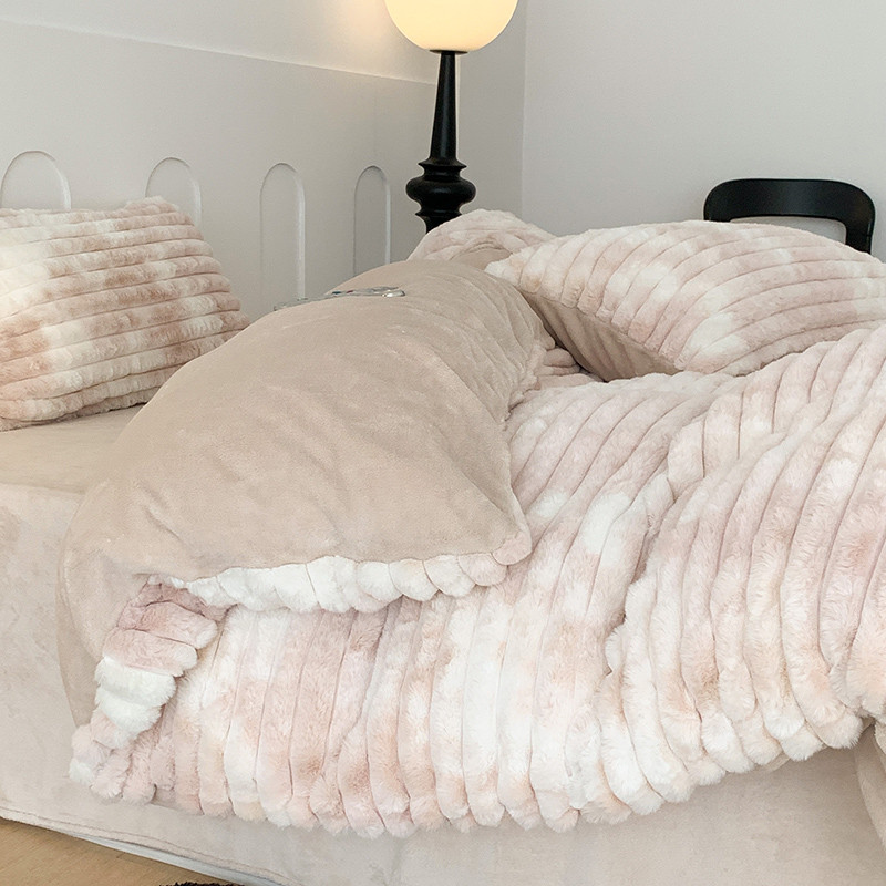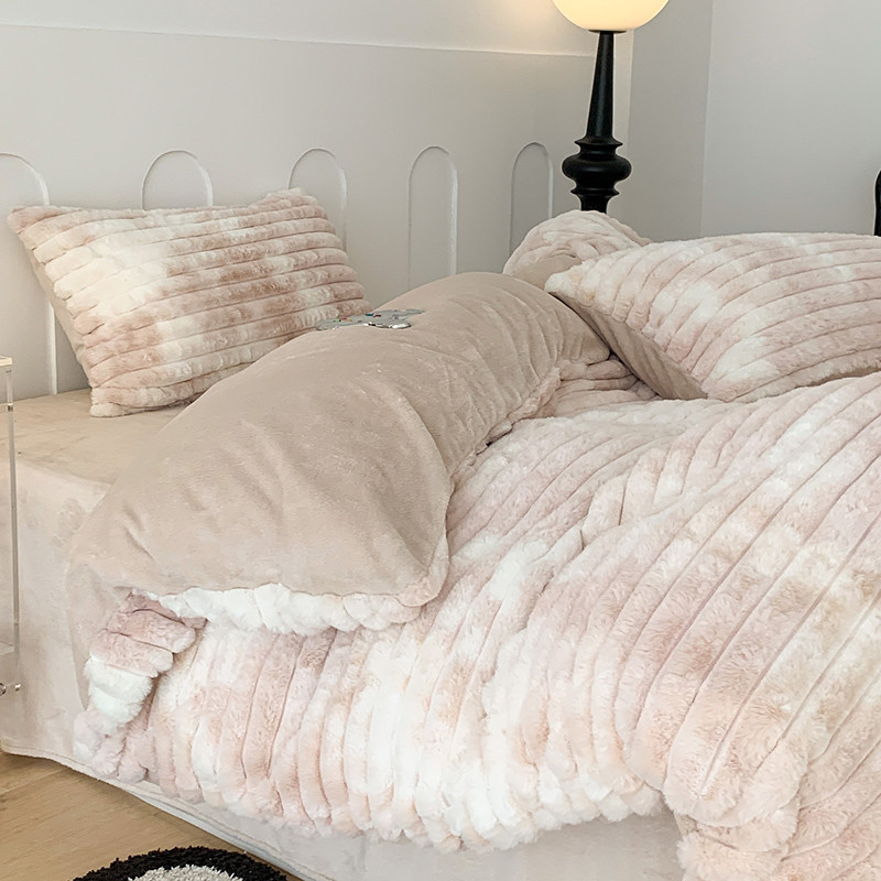 商品名称:昔可家纺 2023新款ins风纯色兔兔绒兔毛四件套 琥珀扎染
