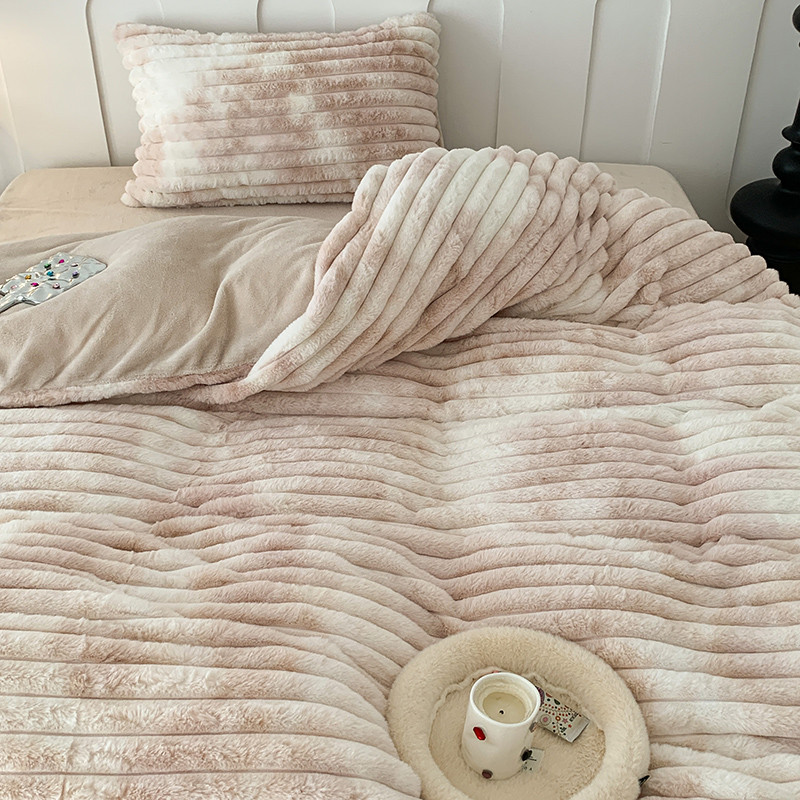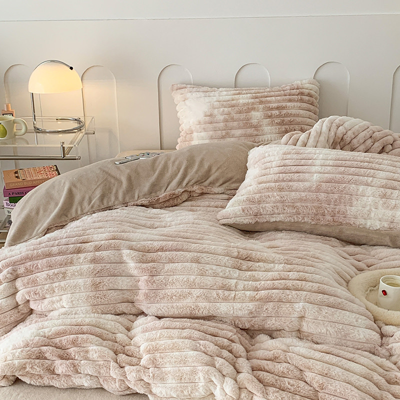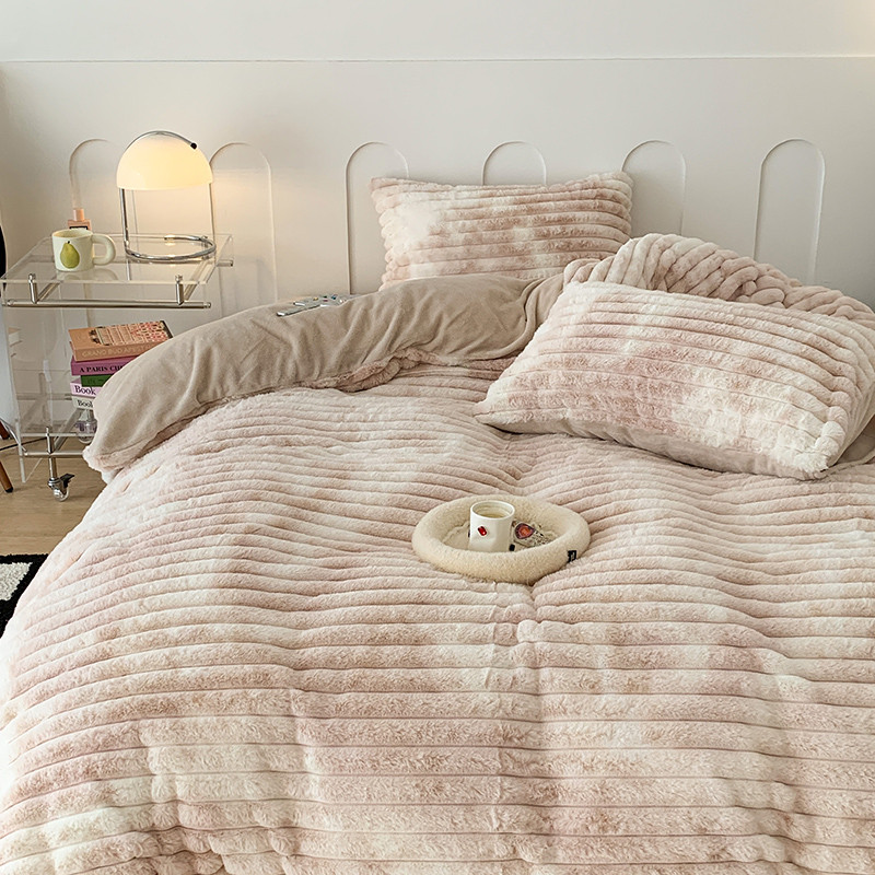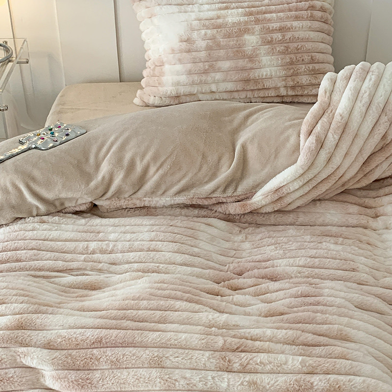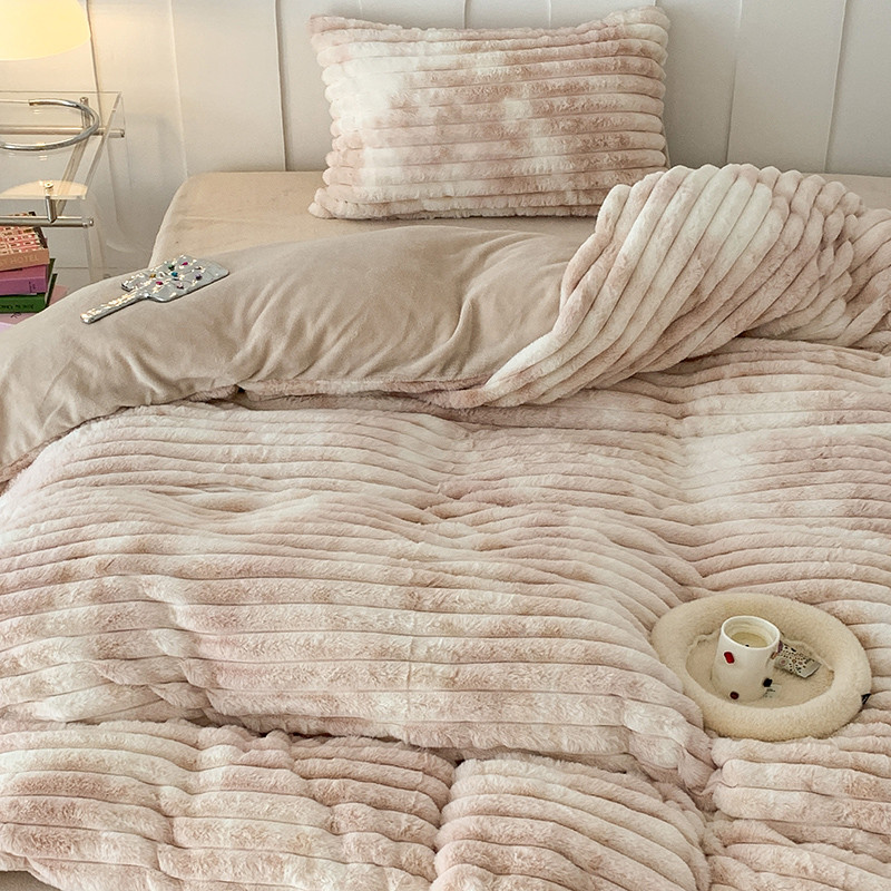 商品名称:昔可家纺 2023新款ins风纯色兔兔绒兔毛四件套 琥珀扎染