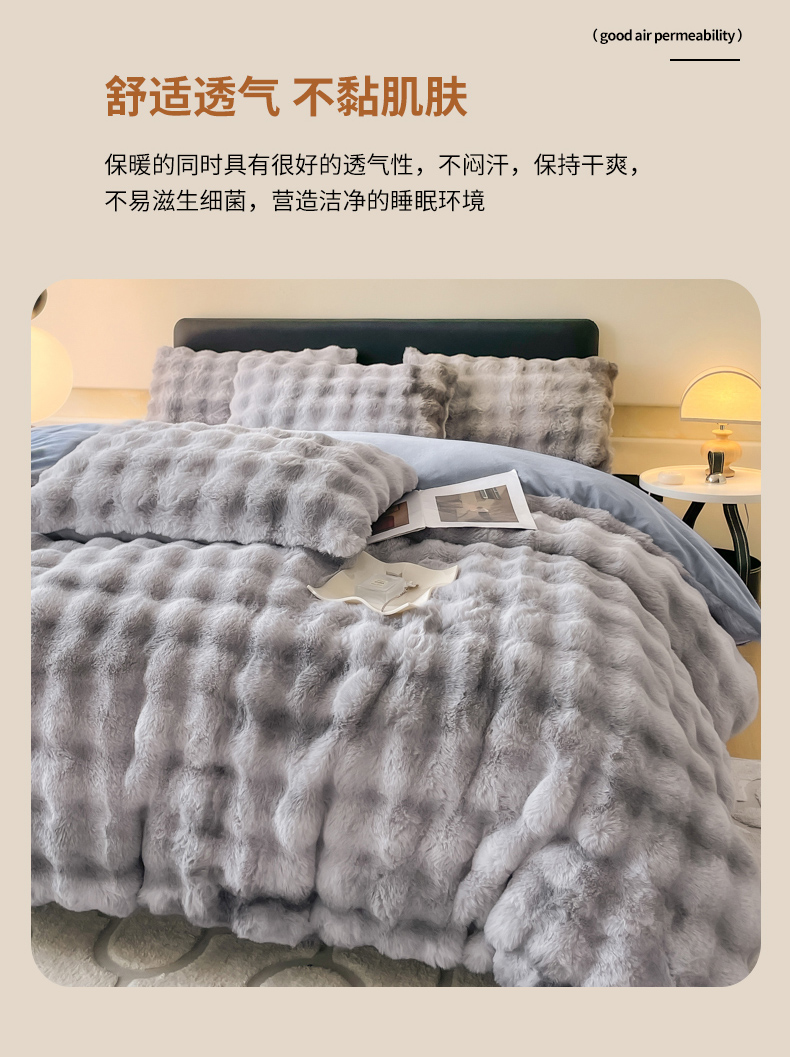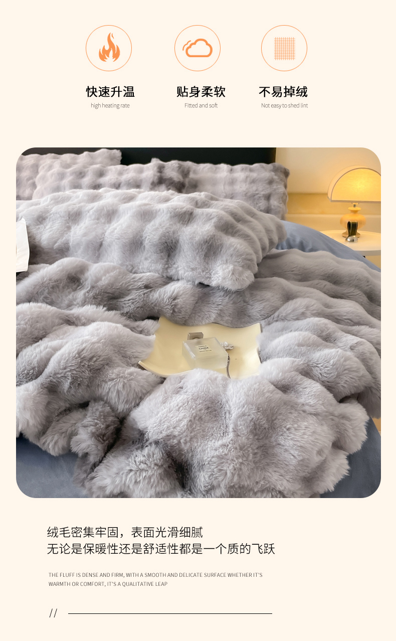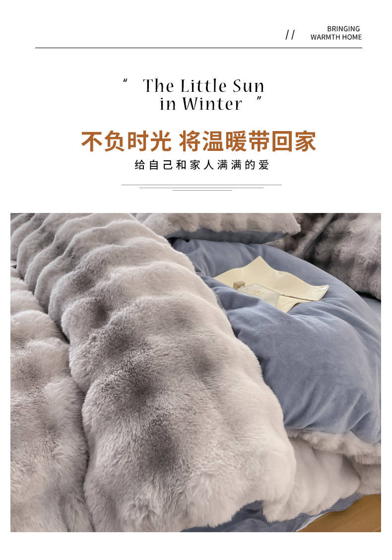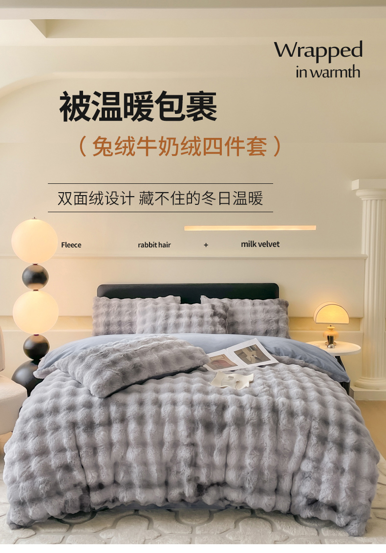 商品名称:慕晨 2023新款兔兔绒四件套暖冬系列 暖冬-灰