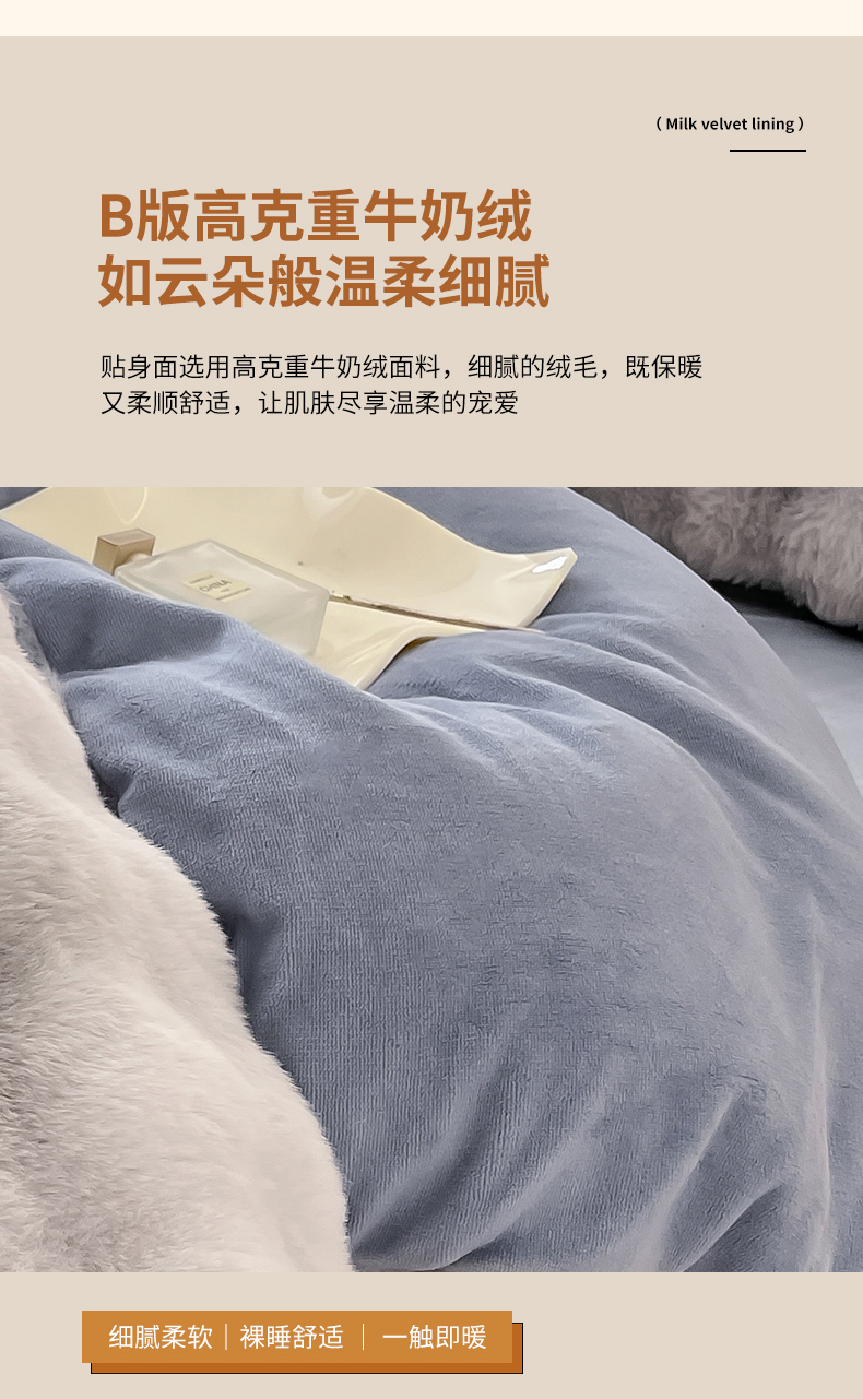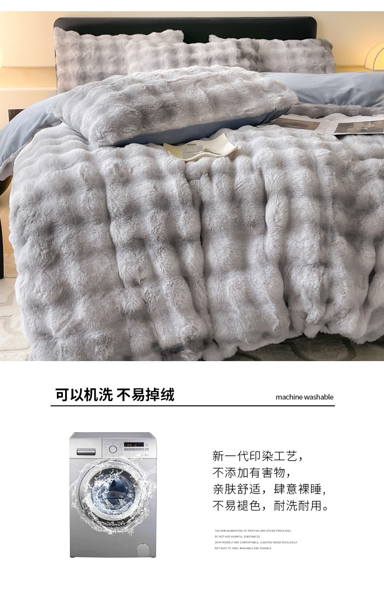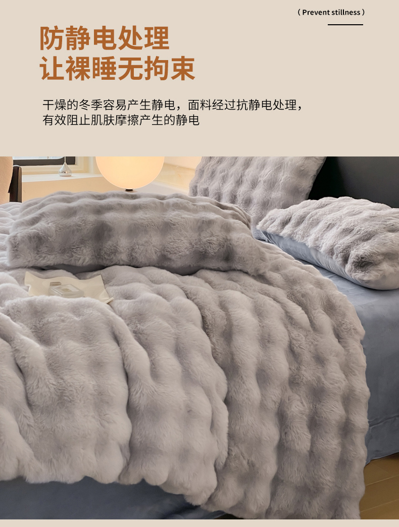 商品名称:慕晨 2023新款兔兔绒四件套暖冬系列 暖冬-灰