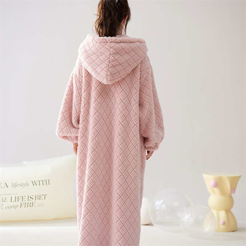 (总)洛兰沙家居馆 2024新款清新睡衣女秋冬三层夹棉珊瑚绒加厚保暖两件套女士可外穿加绒家居服,粉色,灰色,白色,玉色