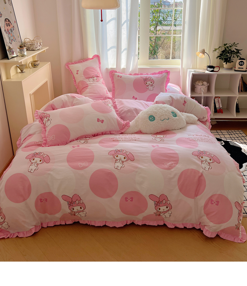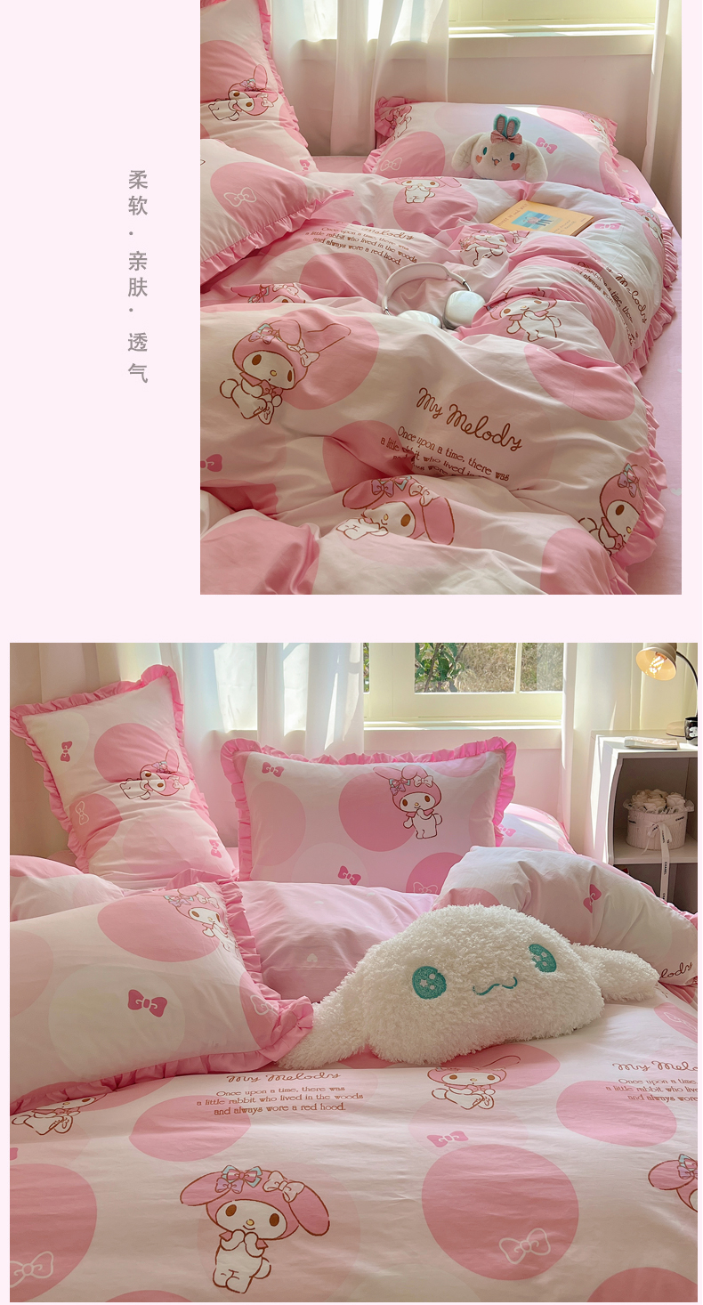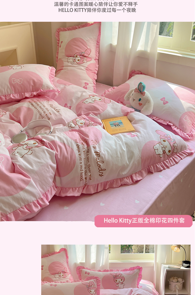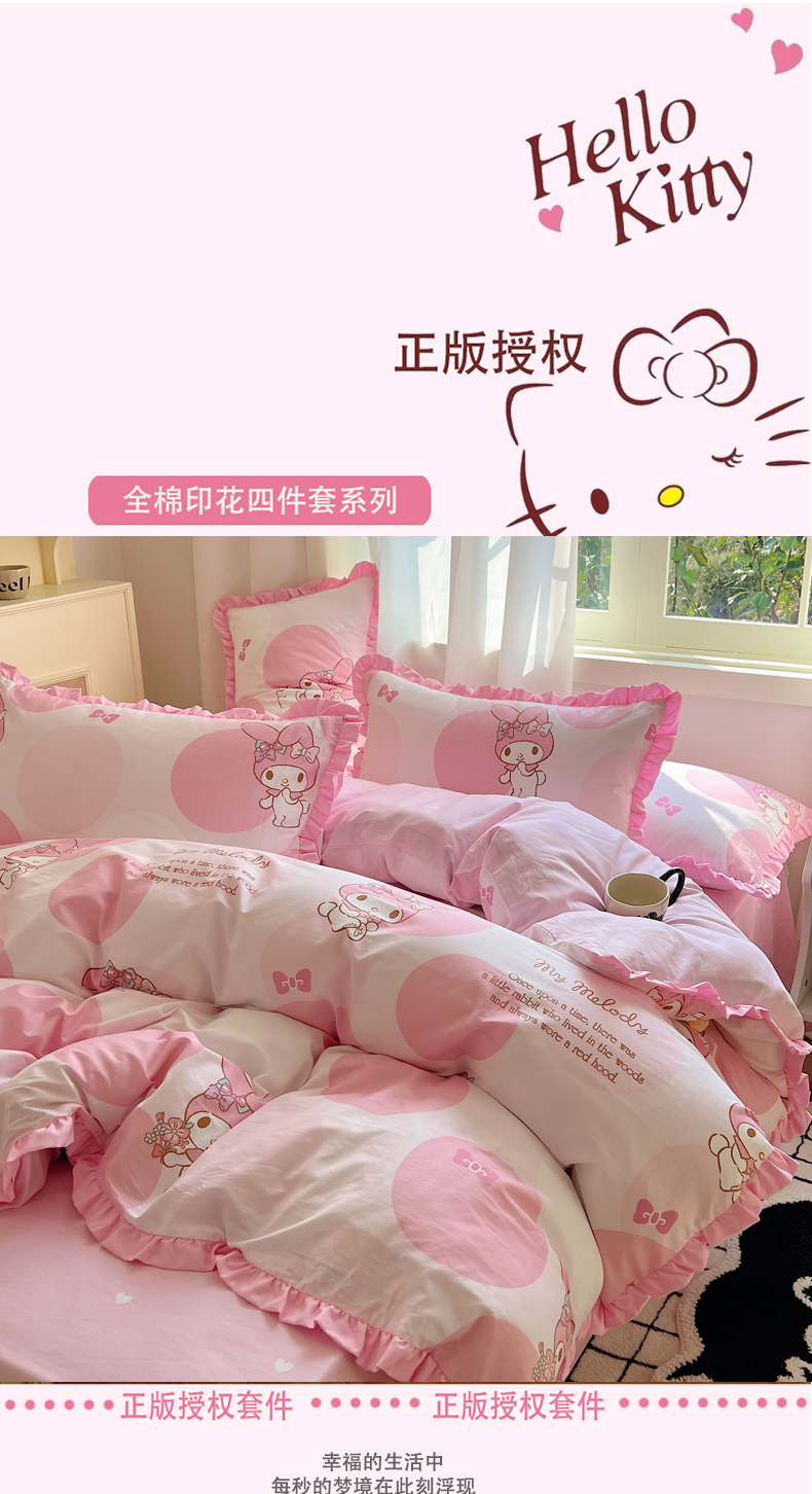 三朵家纺 2023新款全棉花边款三丽鸥系列四件套 圈圈美乐蒂