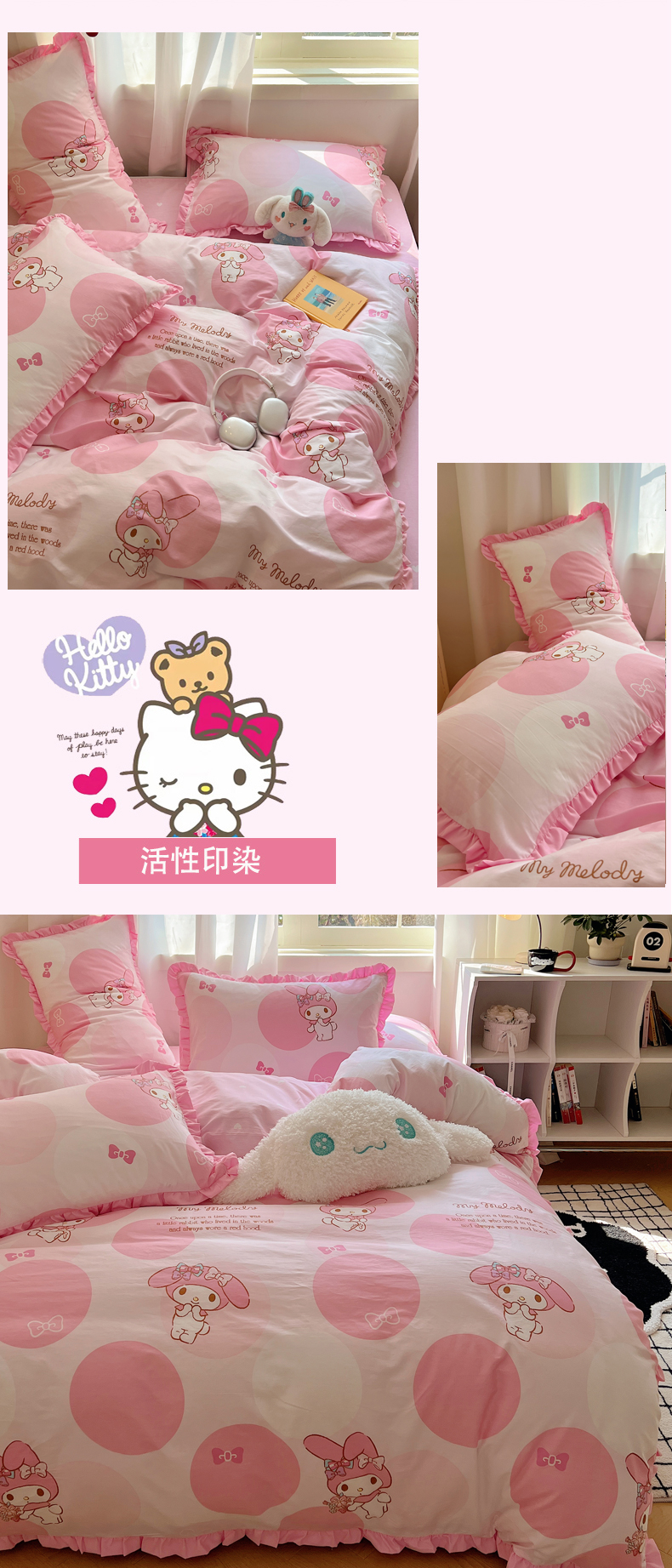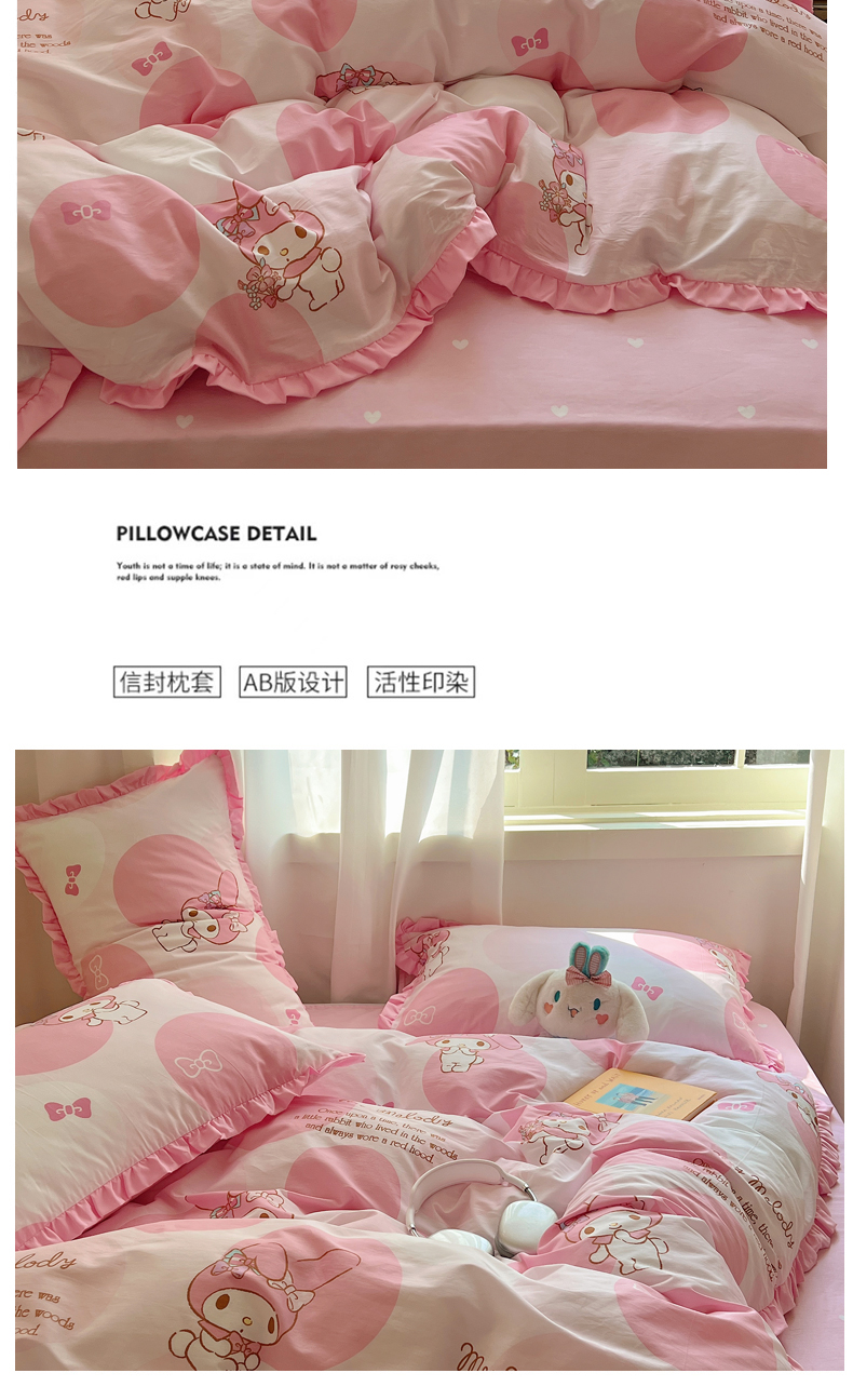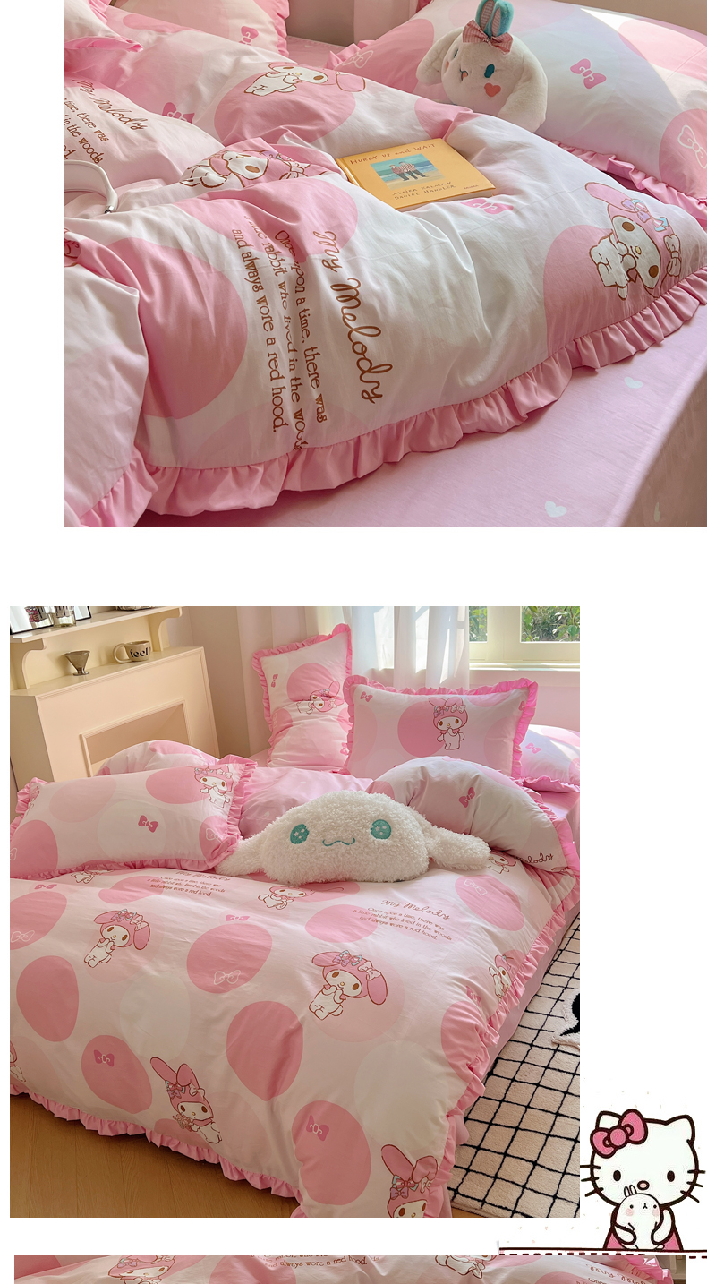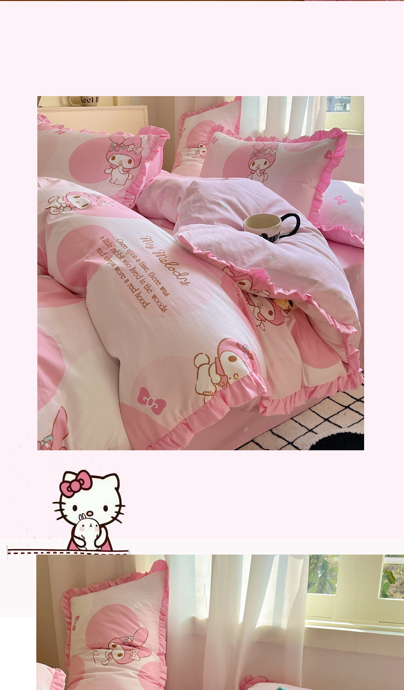 三朵家纺 2023新款全棉花边款三丽鸥系列四件套 圈圈美乐蒂