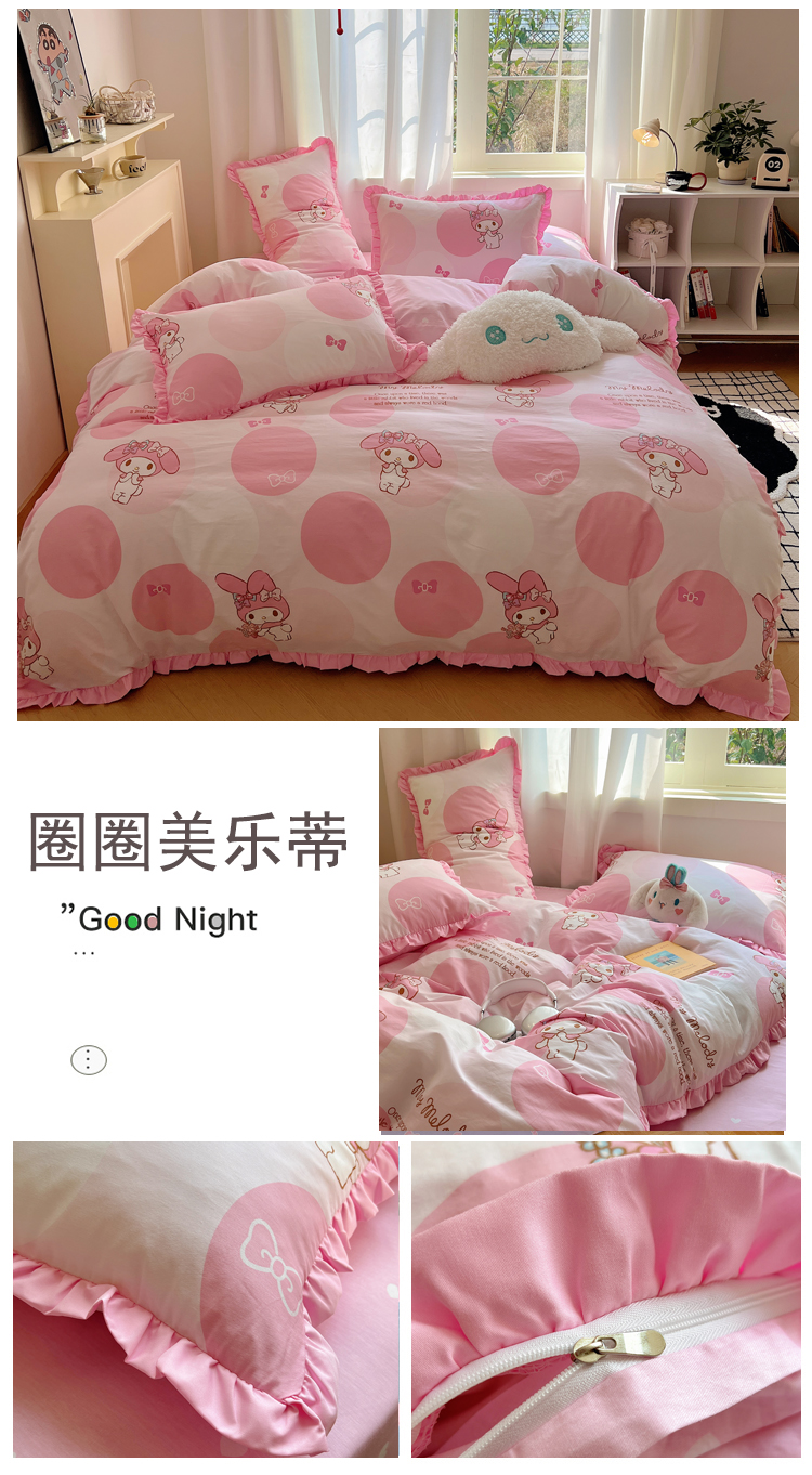 商品名称:三朵家纺 2023新款全棉花边款三丽鸥系列四件套 圈圈美乐蒂