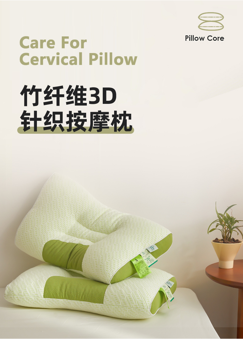 竹纤维3D针织按摩枕-竹青色48*74cm/只
