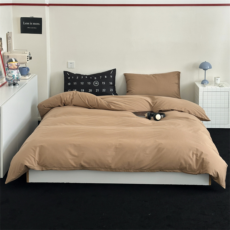 桃喜 2024新款水洗棉纯色混搭四件套系列 黑咖数字-棉