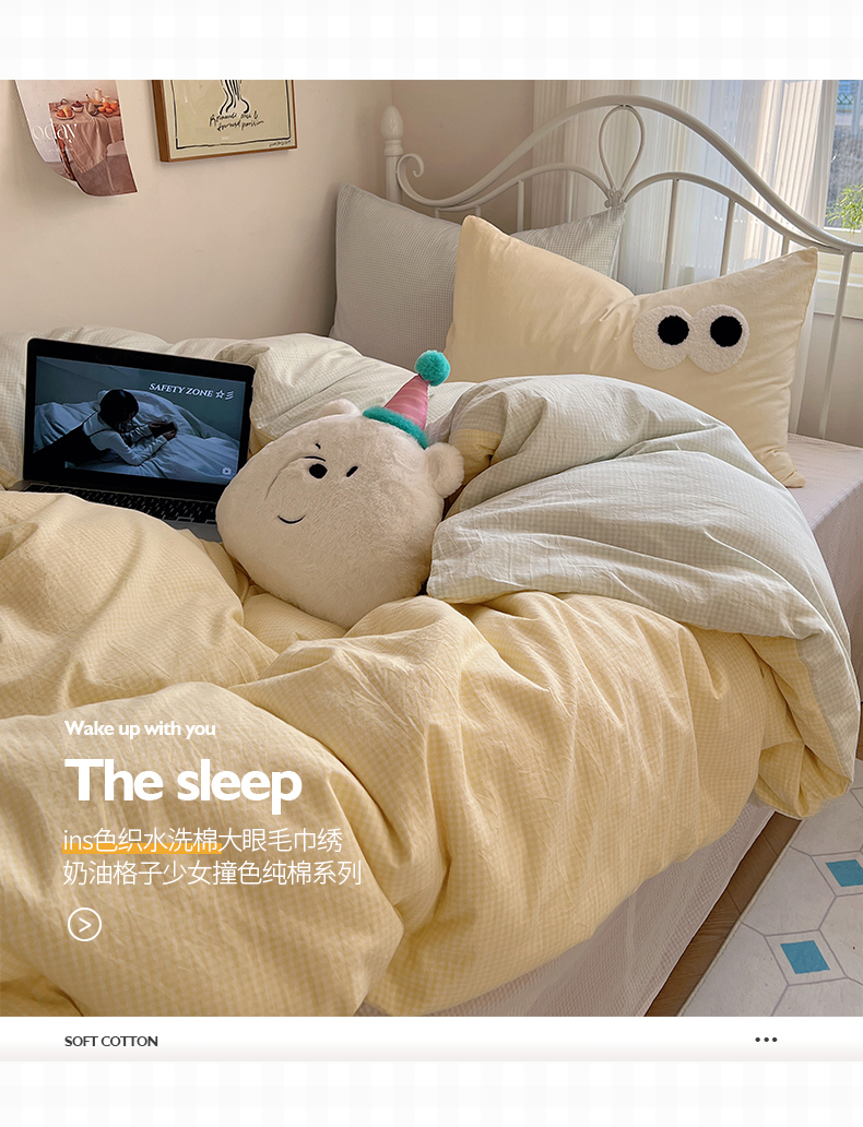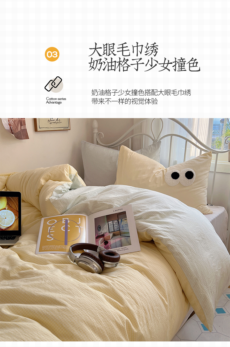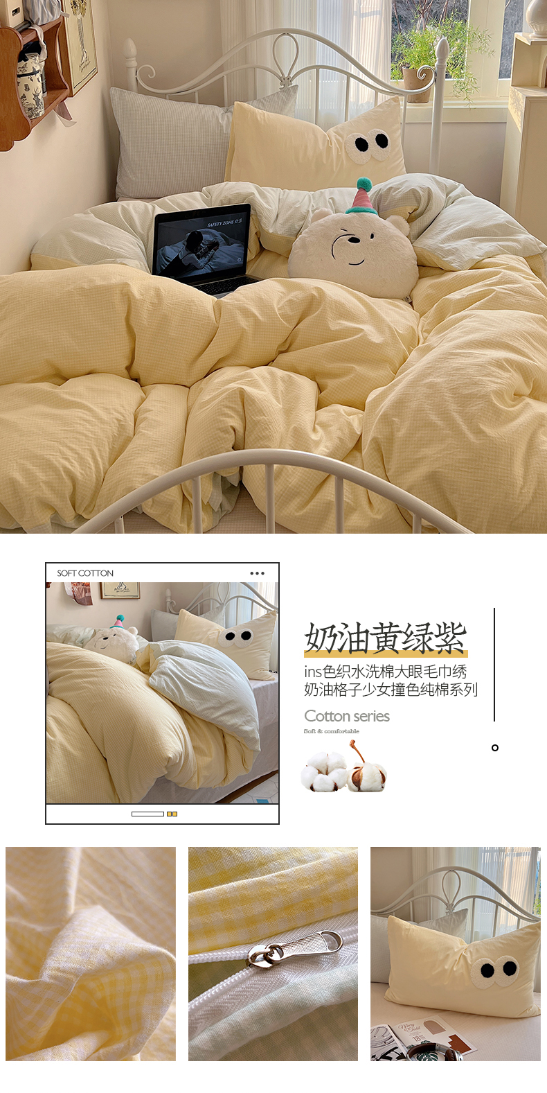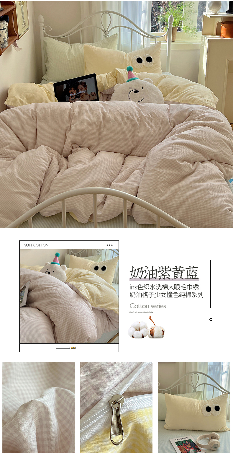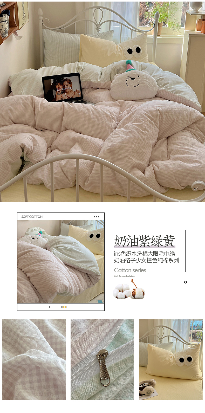 (总)桃子家居 2026新款A类ins色织水洗棉纯棉大眼睛毛巾绣混搭撞色少女多巴胺系列四件套,色织水洗棉-大眼蓝黄,色织水洗棉-大眼蓝黄2,色织水洗棉-大眼粉格奶黄,色织水洗棉-大眼粉条粉粉,色织水洗棉-大眼粉条灰灰,色织水洗棉-大眼格格灰条,色织水洗棉-大眼格格灰条2,色织水洗棉-大眼黄紫格,色织水洗棉-大眼黄紫格2,色织水洗棉-大眼灰条灰,色织水洗棉-大眼蓝条粉,色织水洗棉-大眼蓝条粉2,色织水洗棉-大眼奶黄粉格,色织水洗棉-大眼奶绿粉粉,色织水洗棉-大眼柠檬奶黄,色织水洗棉-大眼深灰白格