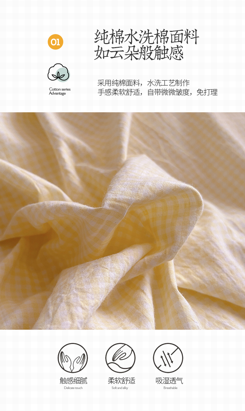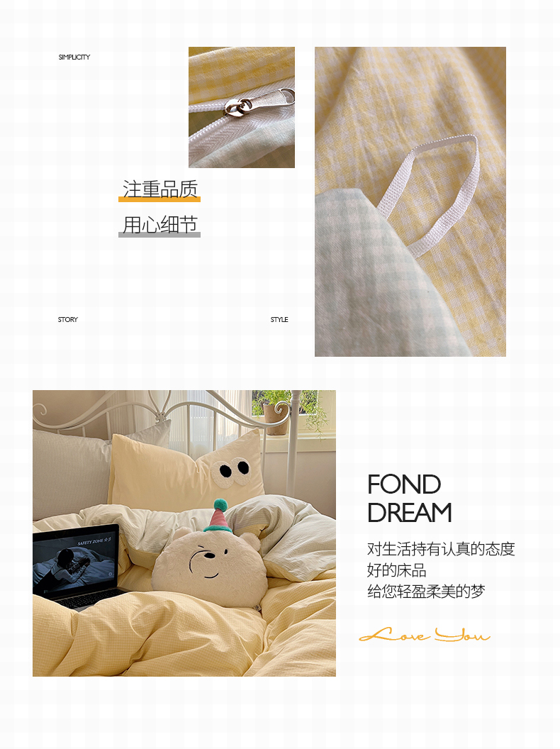 商品名称:(总)桃子 2024新款ins色织水洗棉大眼毛巾绣奶油格子少女撞色纯棉系列四件套