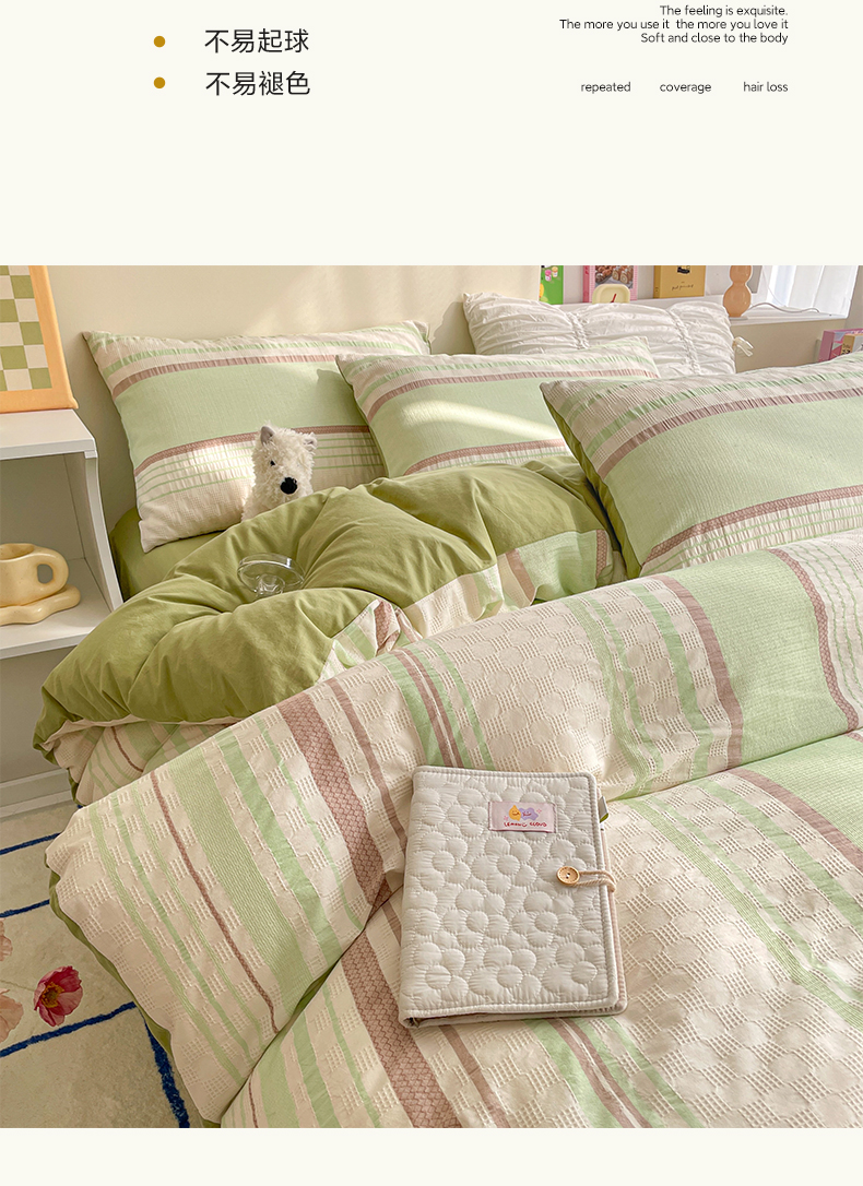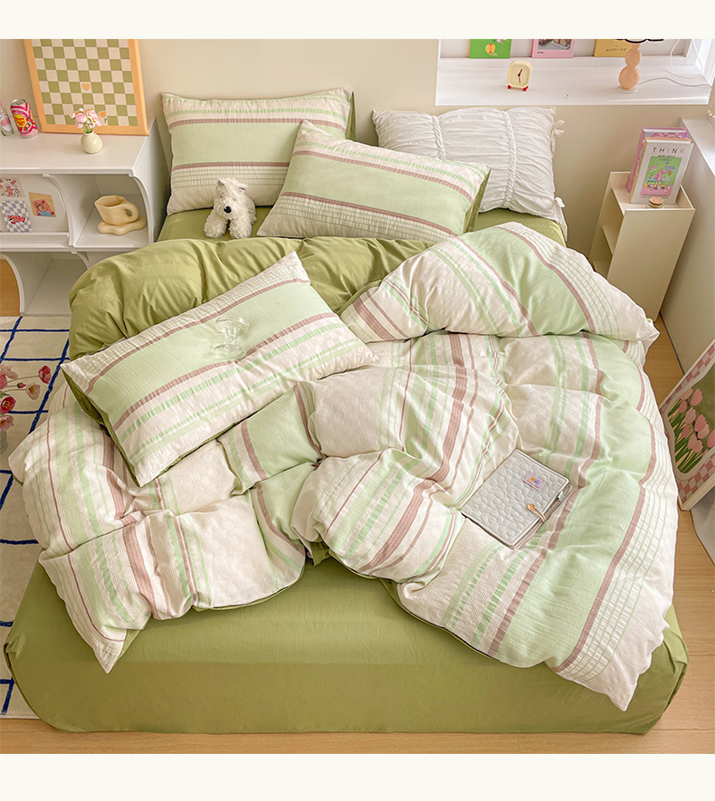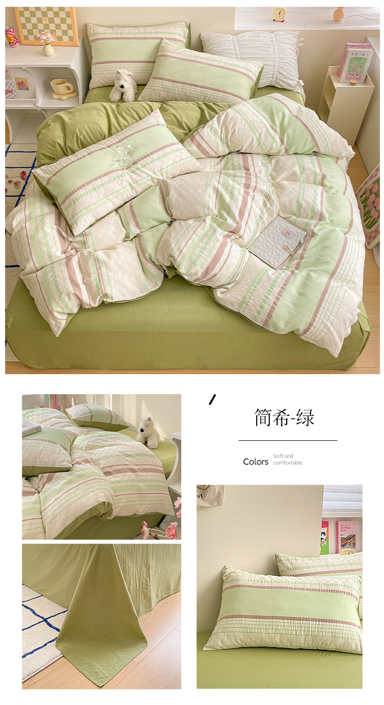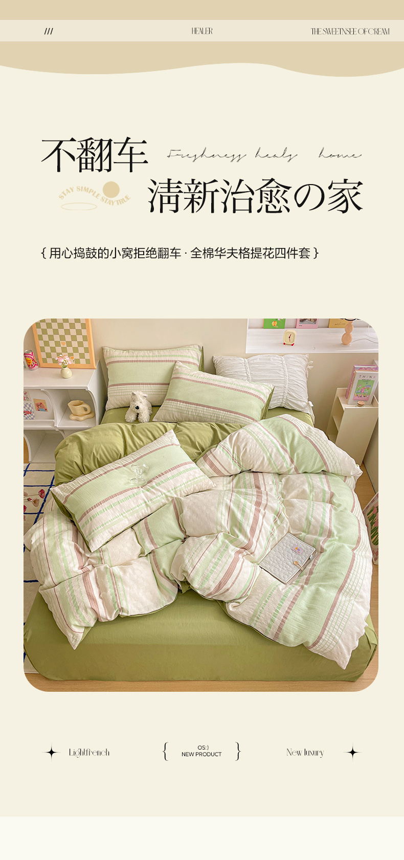 雅居纺家纺 2024新款全棉华夫格提花四件套-简希 简希-绿
