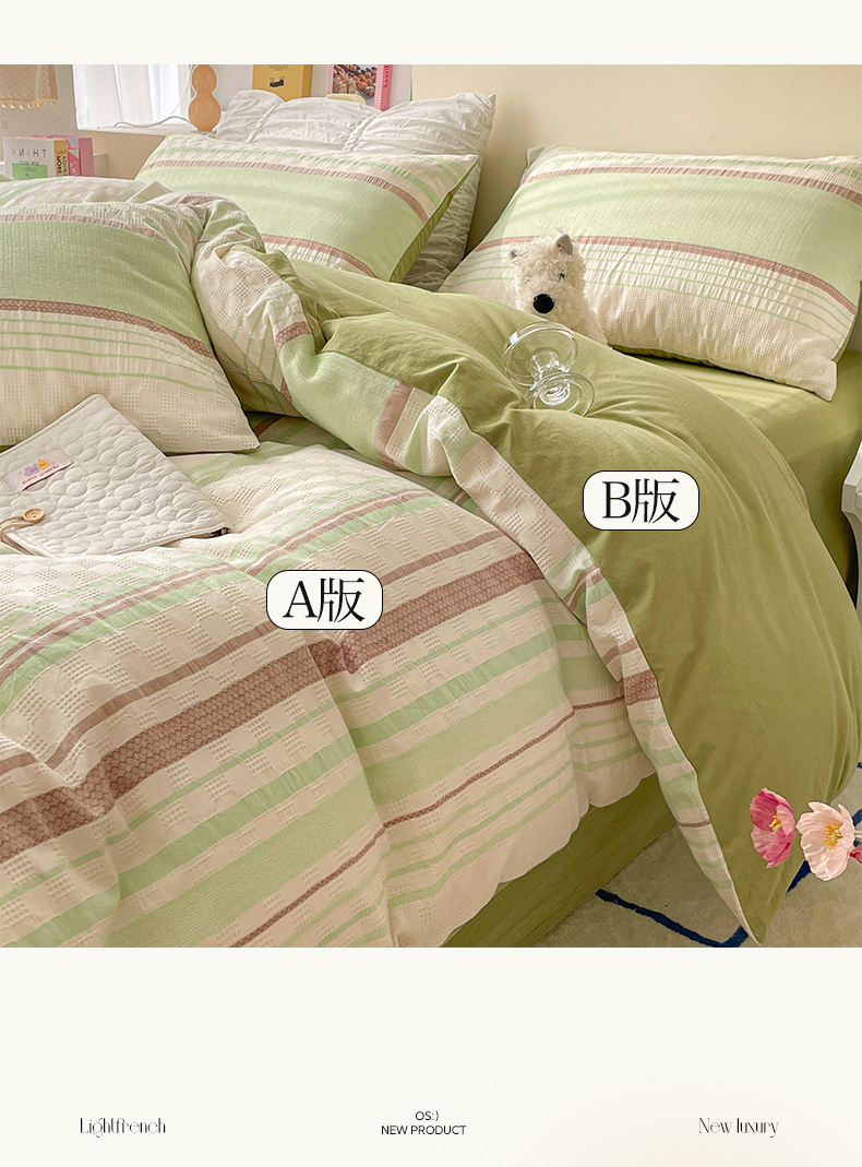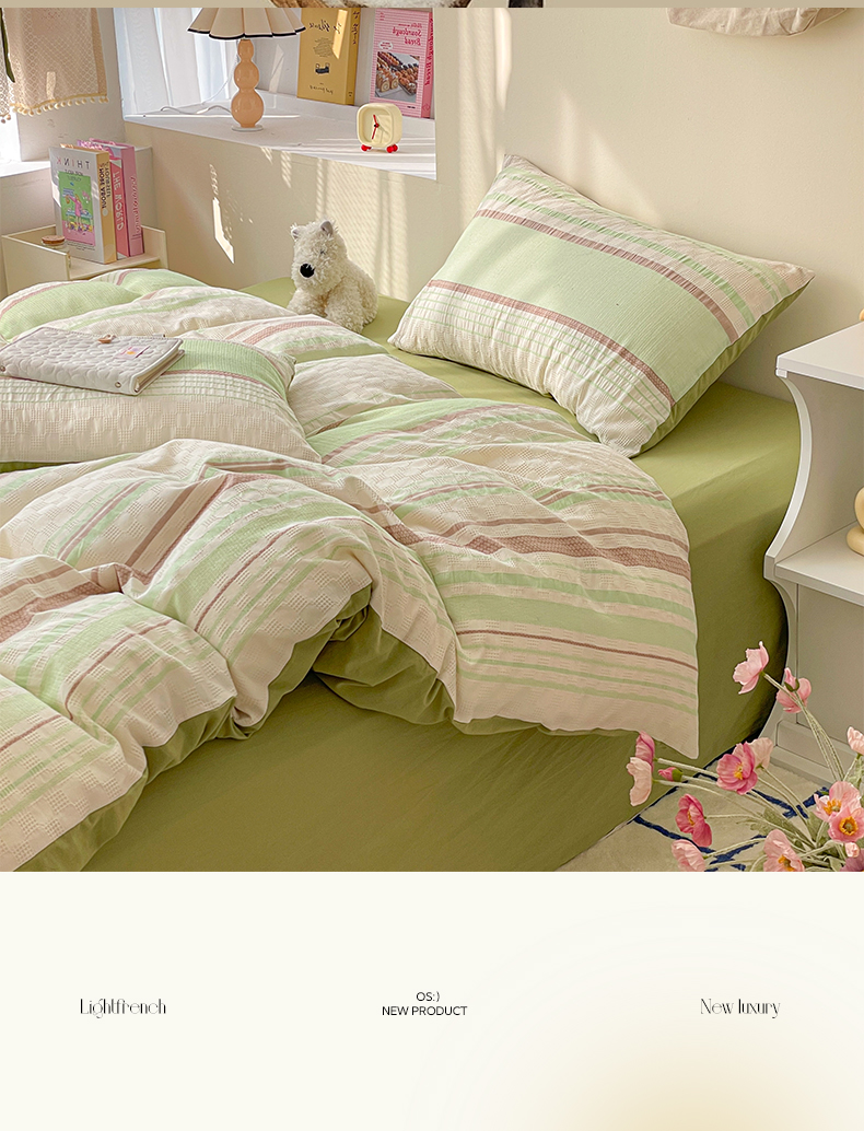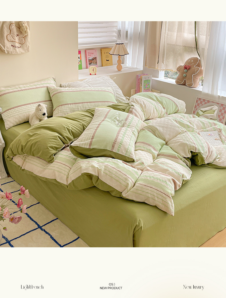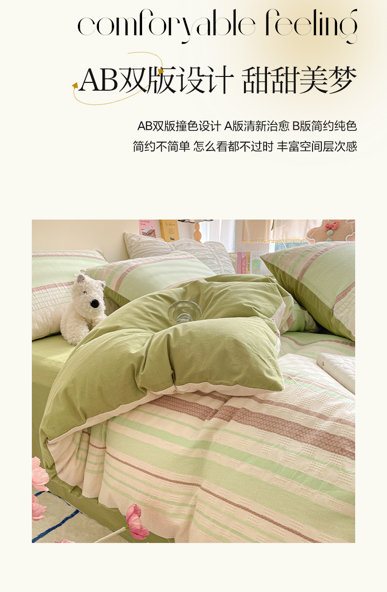 雅居纺家纺 2024新款全棉华夫格提花四件套-简希 简希-绿