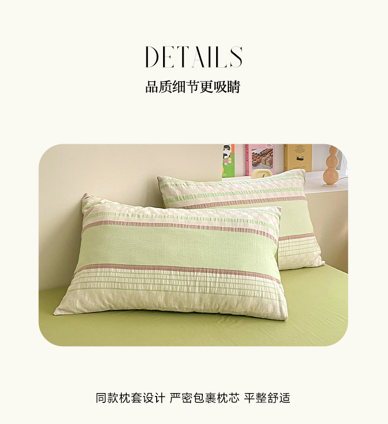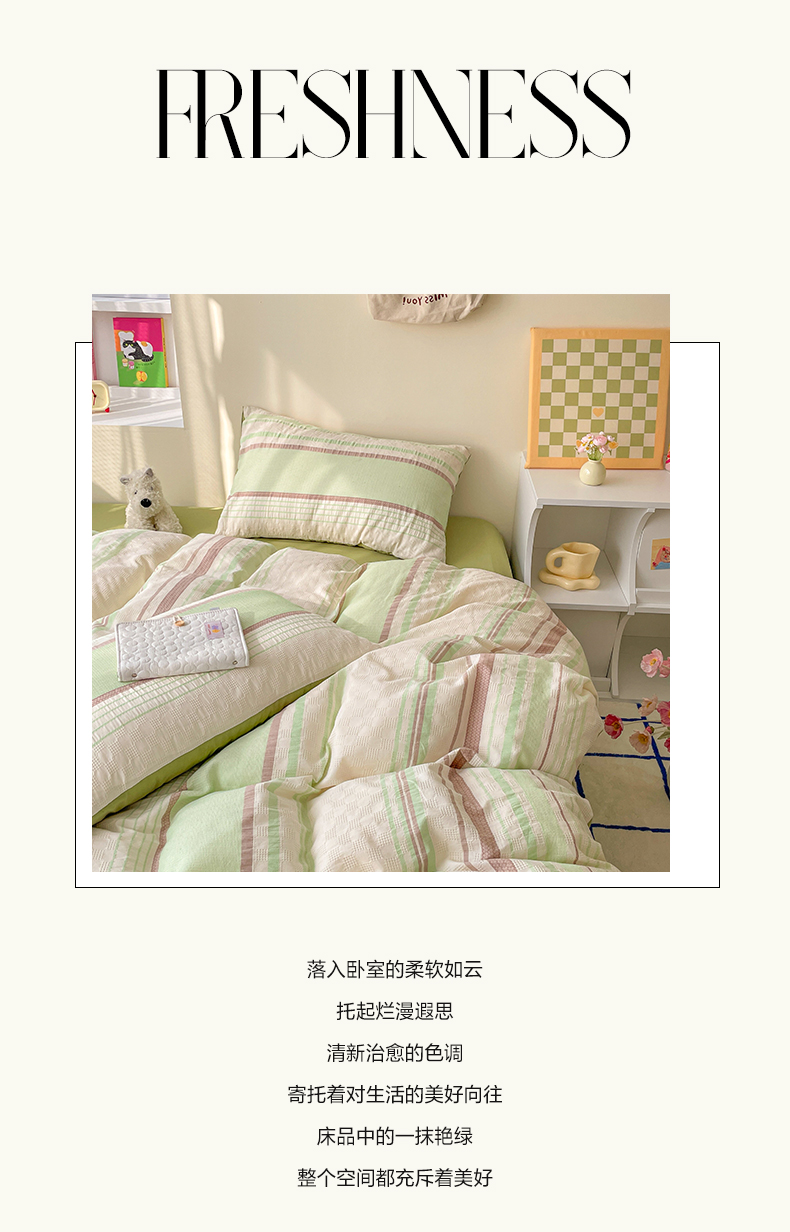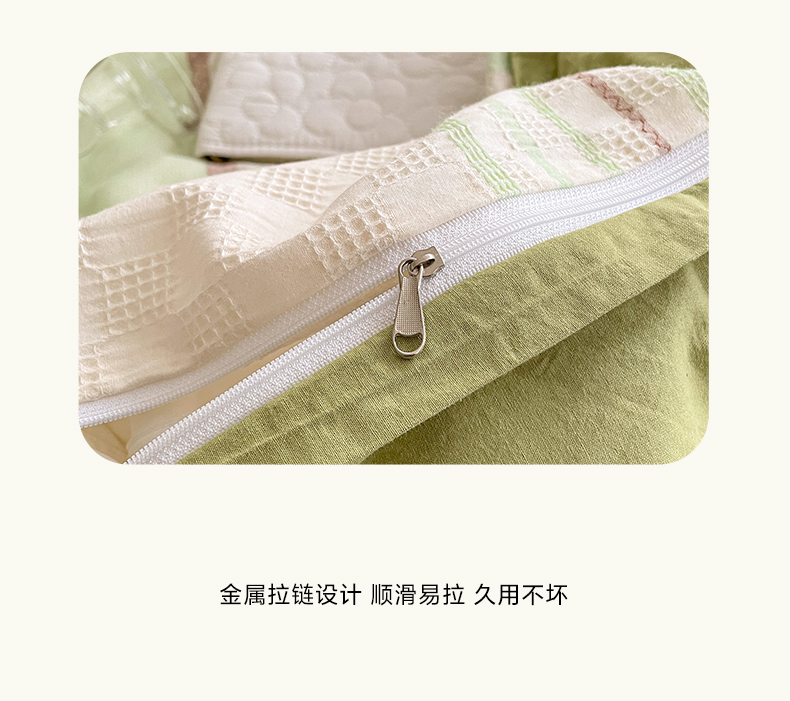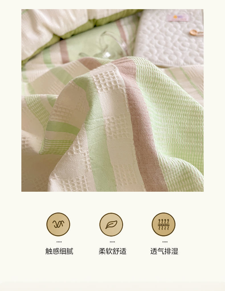 商品名称:雅居纺家纺 2024新款全棉华夫格提花四件套-简希 简希-绿