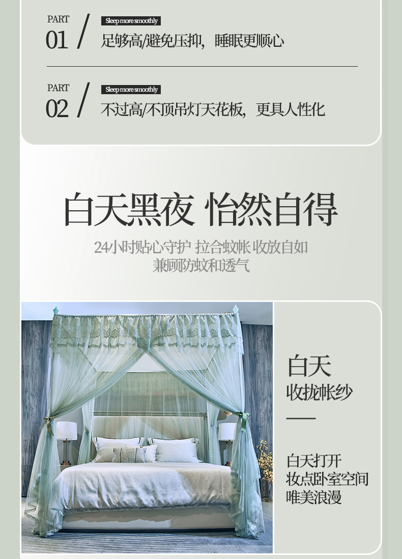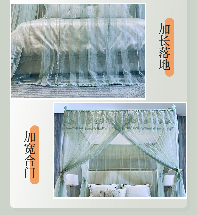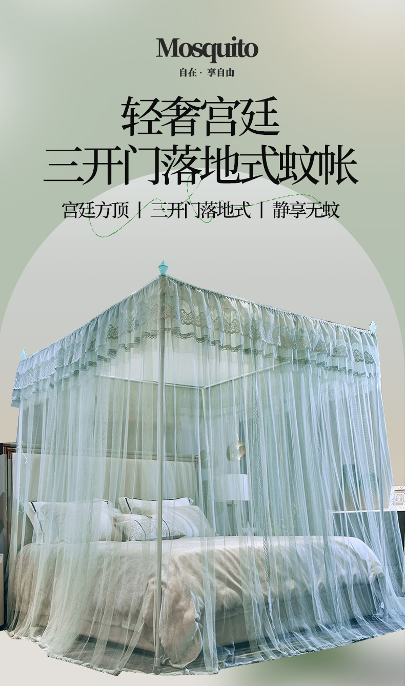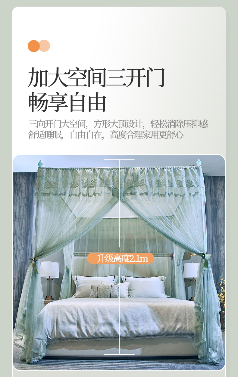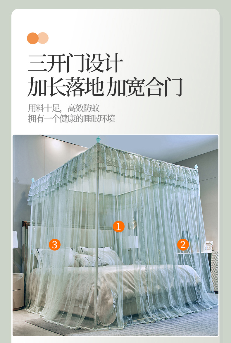 商品名称:夏彩 2024新款88556轻奢宫廷三开门落地式蚊帐 88556-抹茶绿