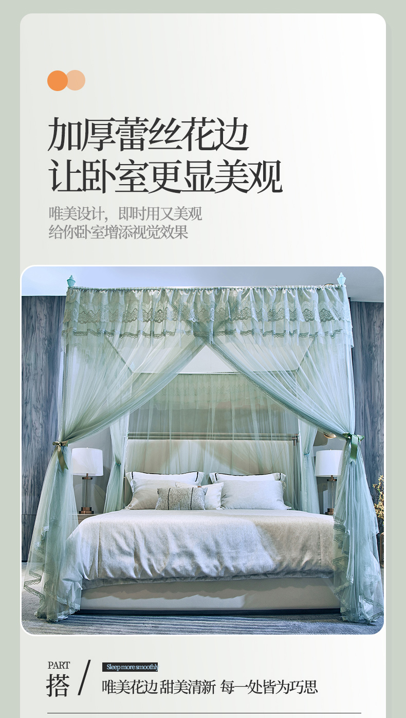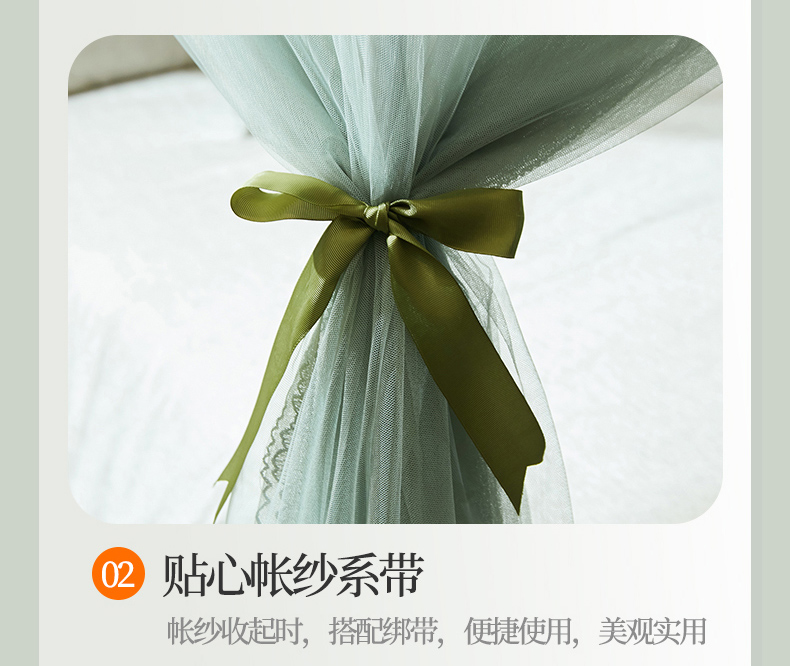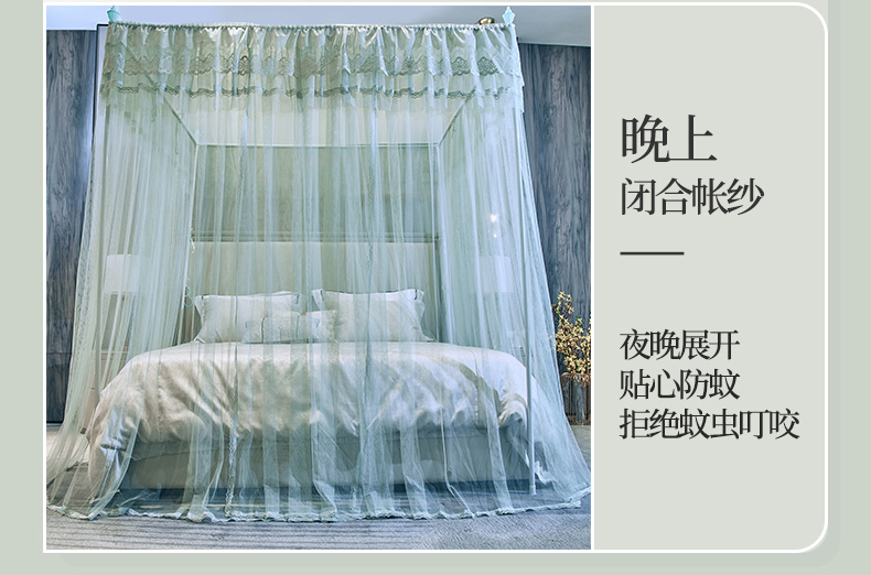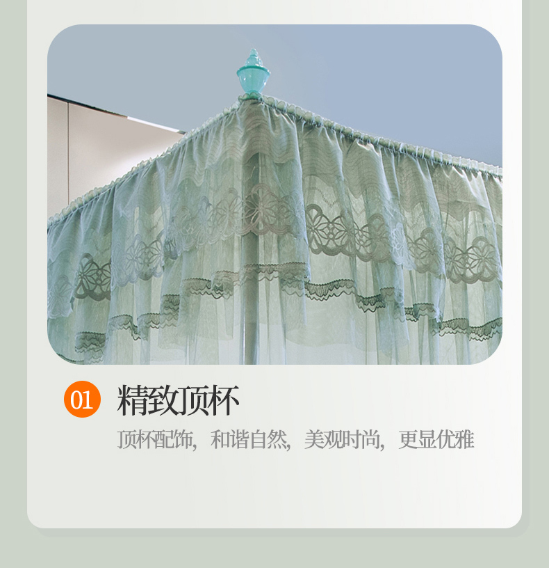 (总)夏彩 2025新款蕾丝U型防摔坐床蚊帐-88630,绿雅灰,藕玉色,香槟色