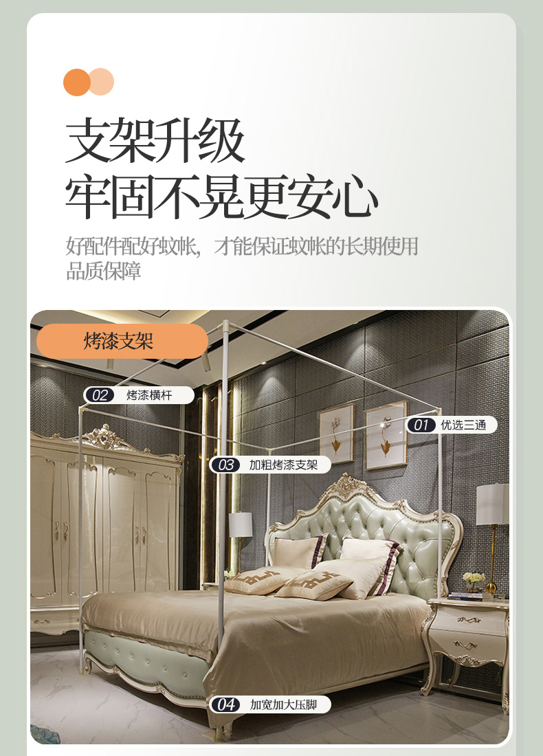 (总)夏彩 2025新款雪纺绣花加柔加密外撑式25烤漆铁艺加粗支架宫廷蚊帐-88612,88612白色,88612卡其,88612蓝,88612蓝灰,88612抹茶绿,88612虾粉,88612杏色,88612玉色