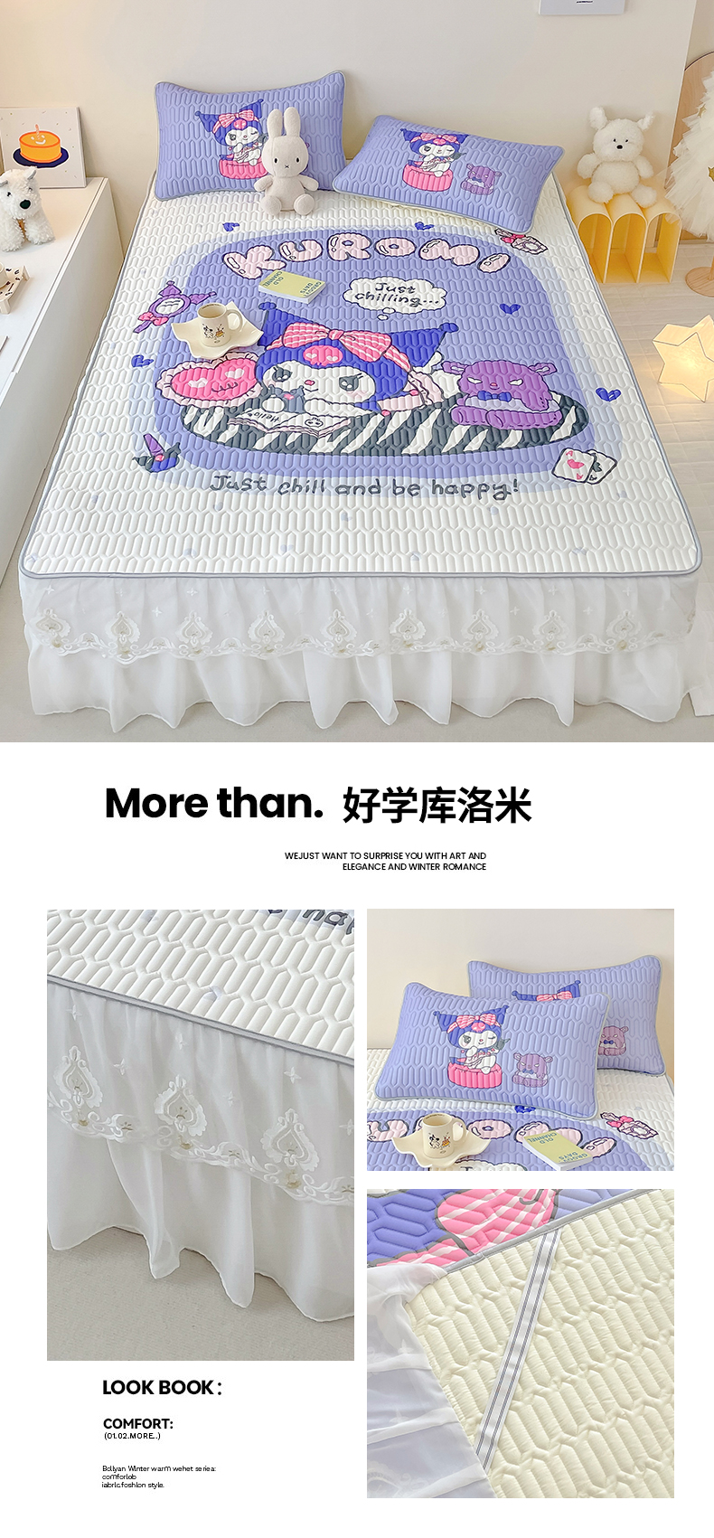 商品名称:米帛家纺 2024新款大版三丽鸥A类凉感丝乳胶凉席-床裙款 好学库洛米