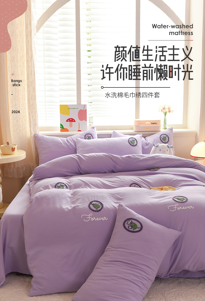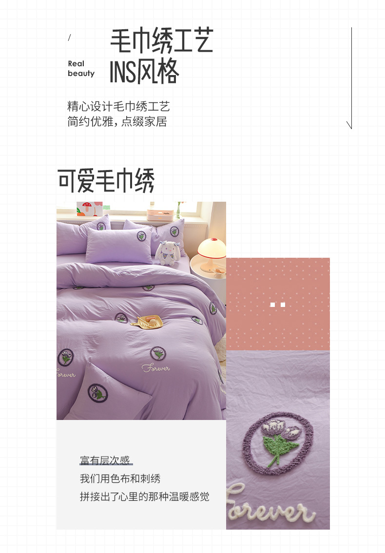 当前位置: 91家纺网 > 商品网购 > 床品套件 > 四件套 > 水洗棉四件套 > 莉莉安 2025新款水洗棉毛巾绣四件套-卡哇伊系列 卡哇伊-郁金香