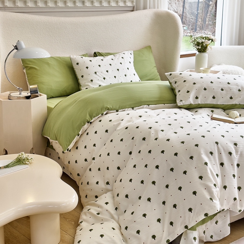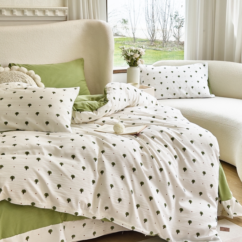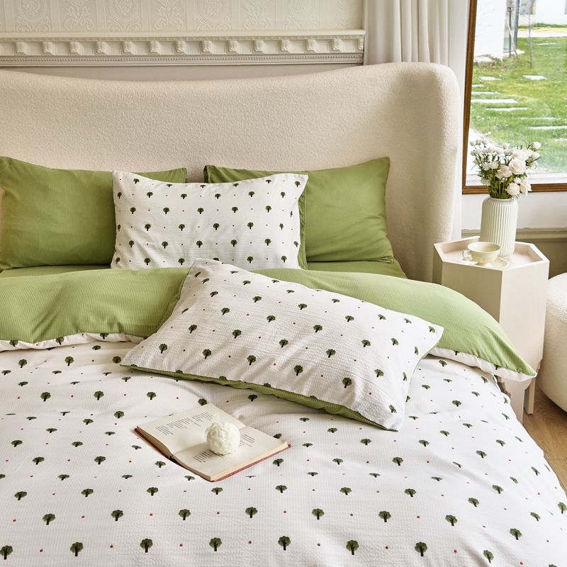 富之航家纺 2024新款提花泡泡棉四件套 森林-绿