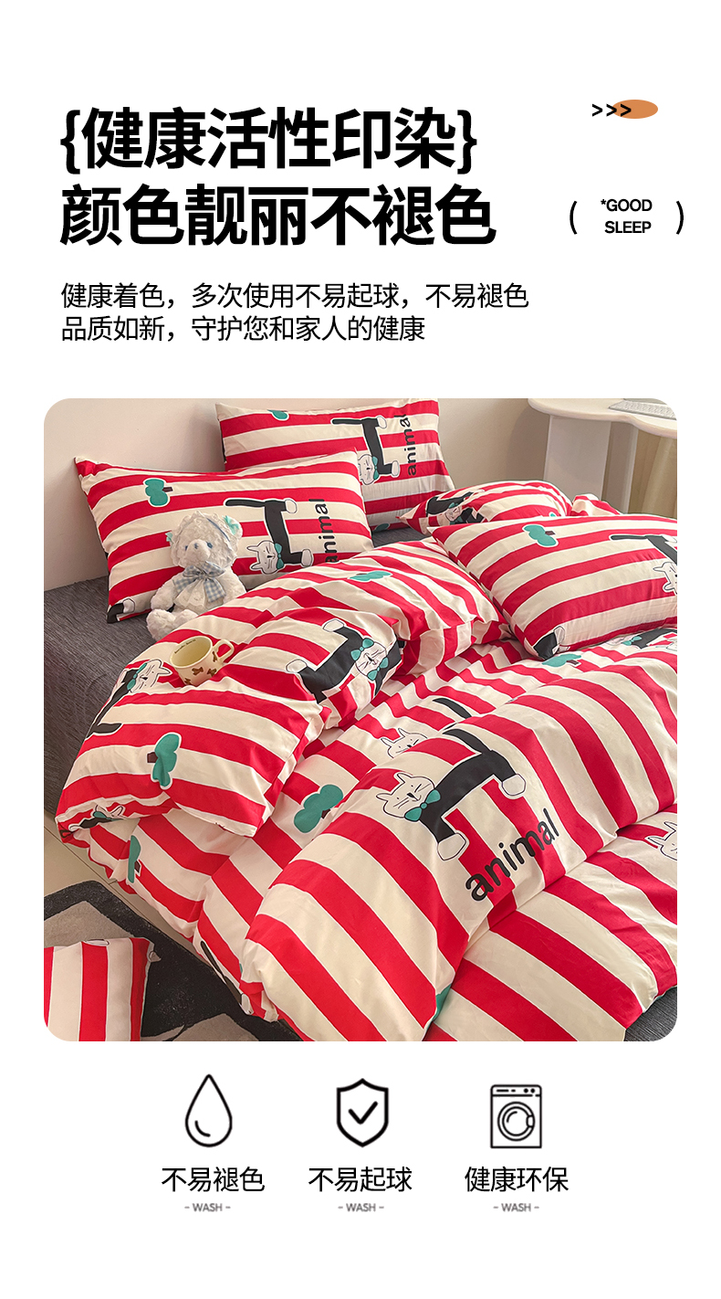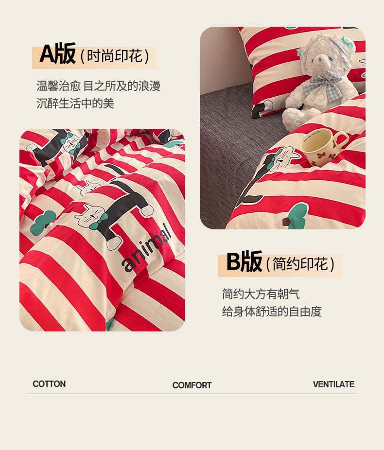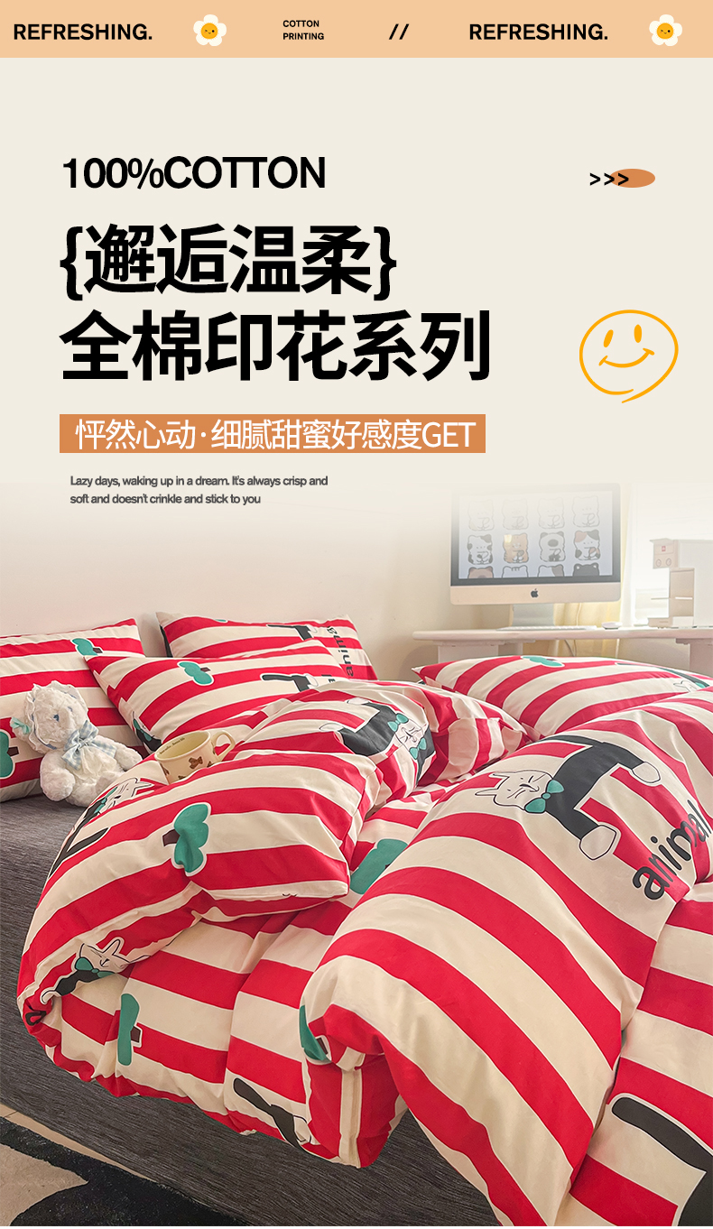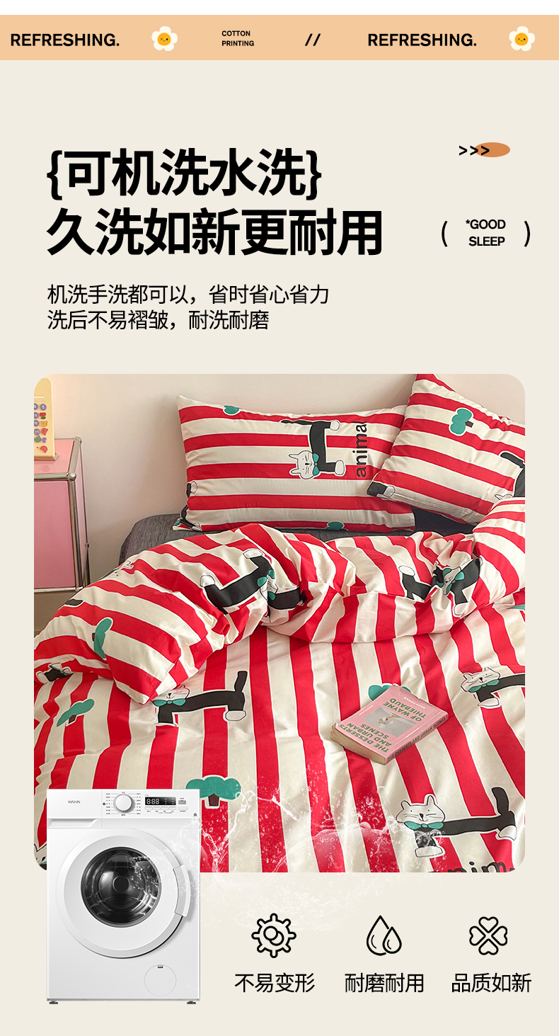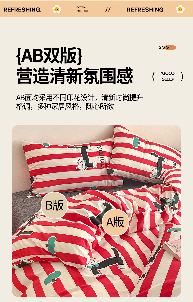(总)蓝邻家纺 2024新款小清新印花全棉四件套学生宿舍三件套,茶园兔,风翩,机灵兔熊,可妮露,藤蔓兔,筱薇