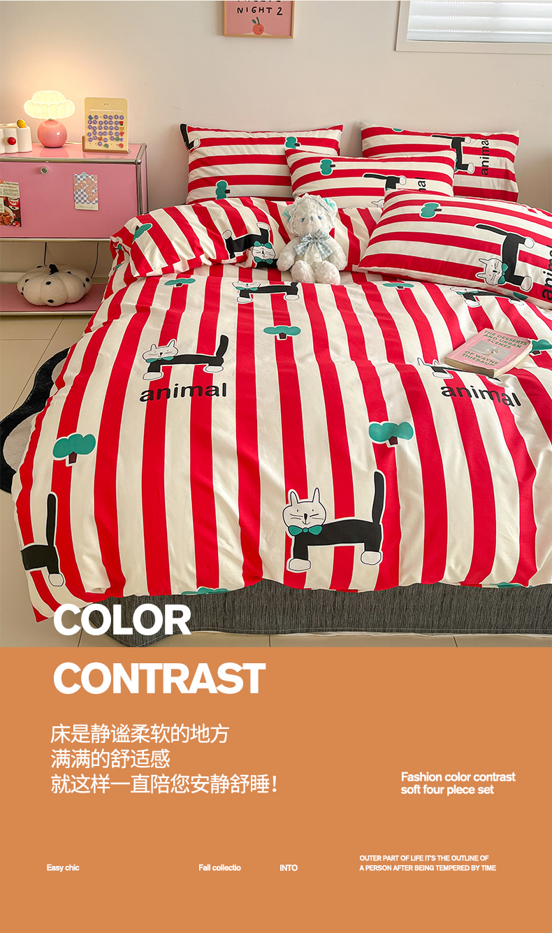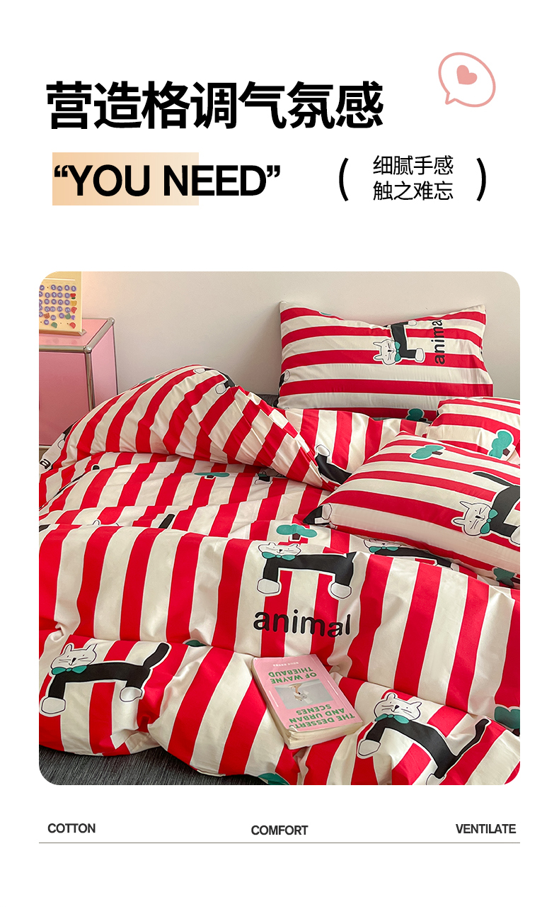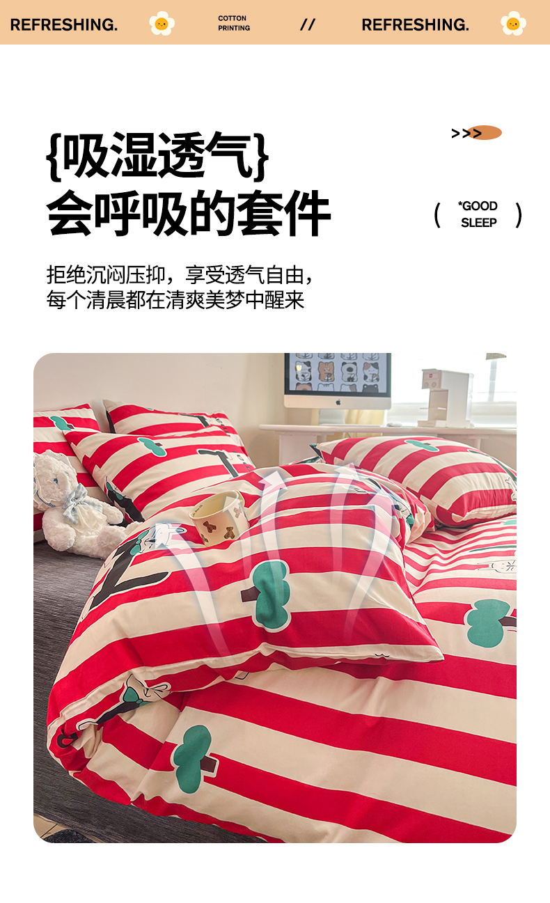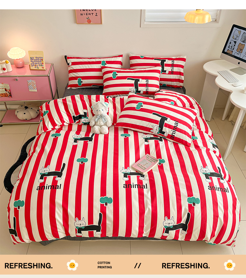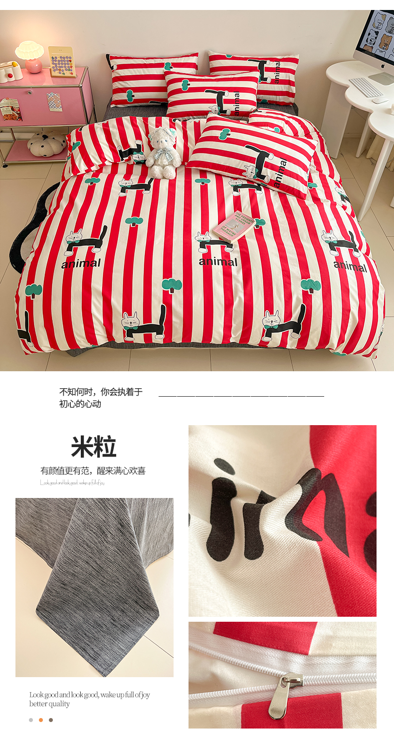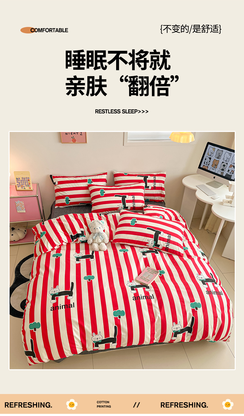 (总)蓝邻家纺 2024新款小清新印花全棉四件套学生宿舍三件套,茶园兔,风翩,机灵兔熊,可妮露,藤蔓兔,筱薇