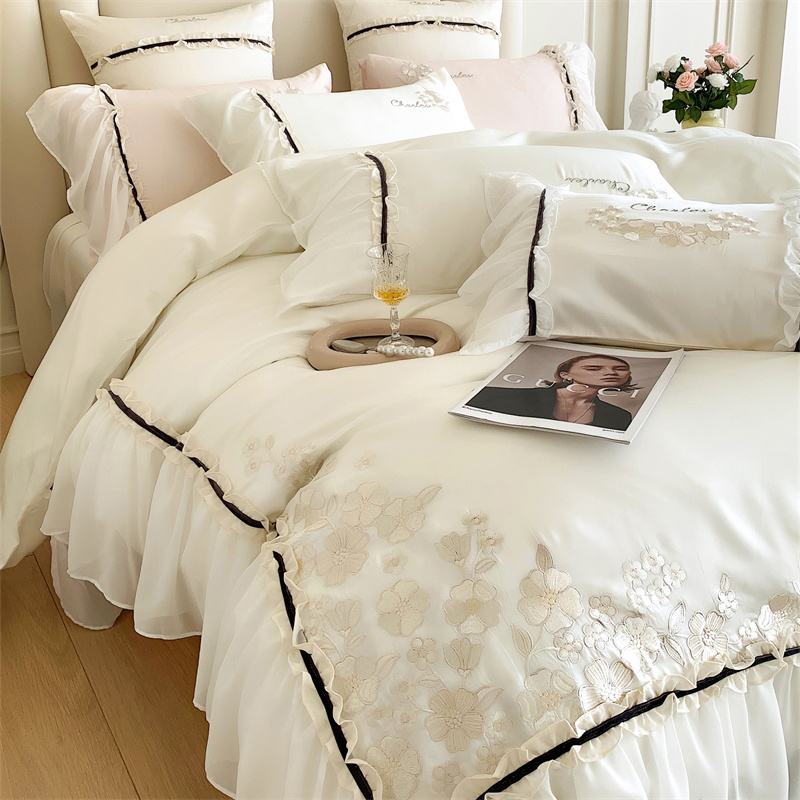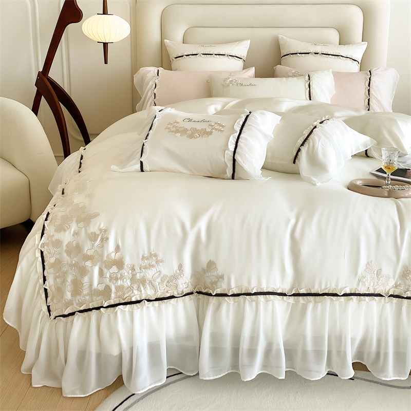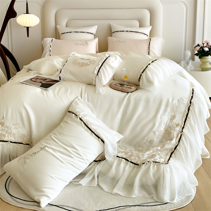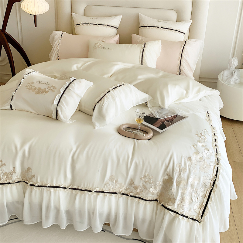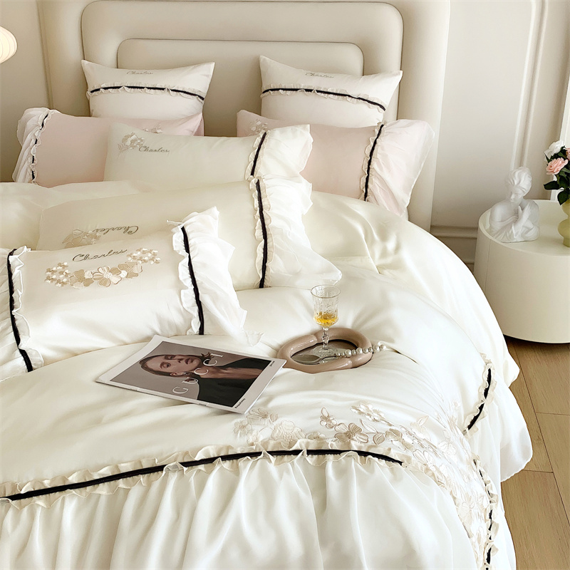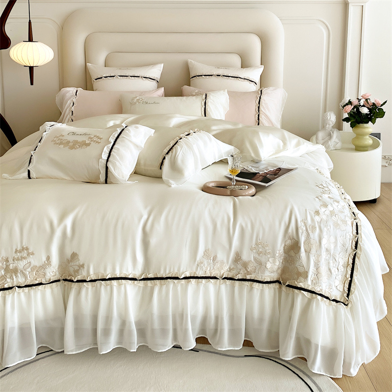 馨蕊家居 2024新款100支全棉四件套-维多利亚 维多利亚-月光白