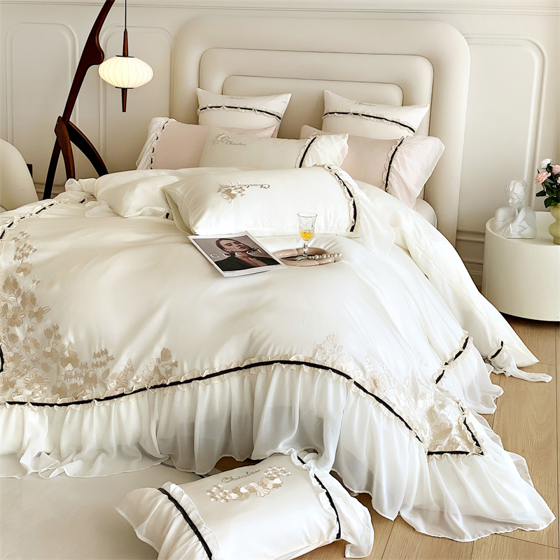 商品名称:馨蕊家居 2024新款100支全棉四件套-维多利亚 维多利亚-月光白