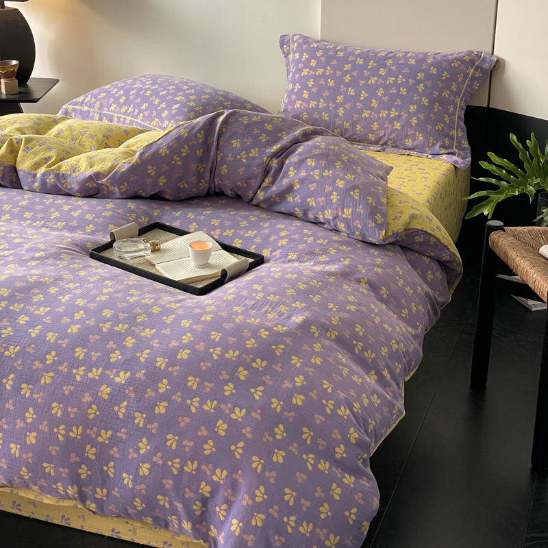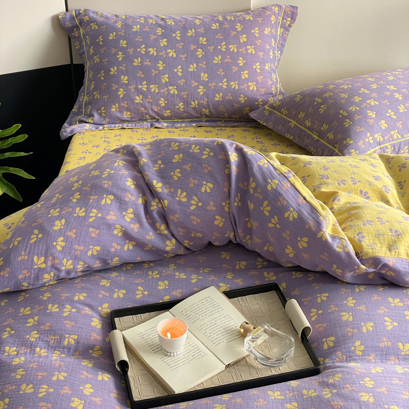 商品名称:睡棉坊 2024新款全棉色织提花双层纱复古单被套 诗画-紫