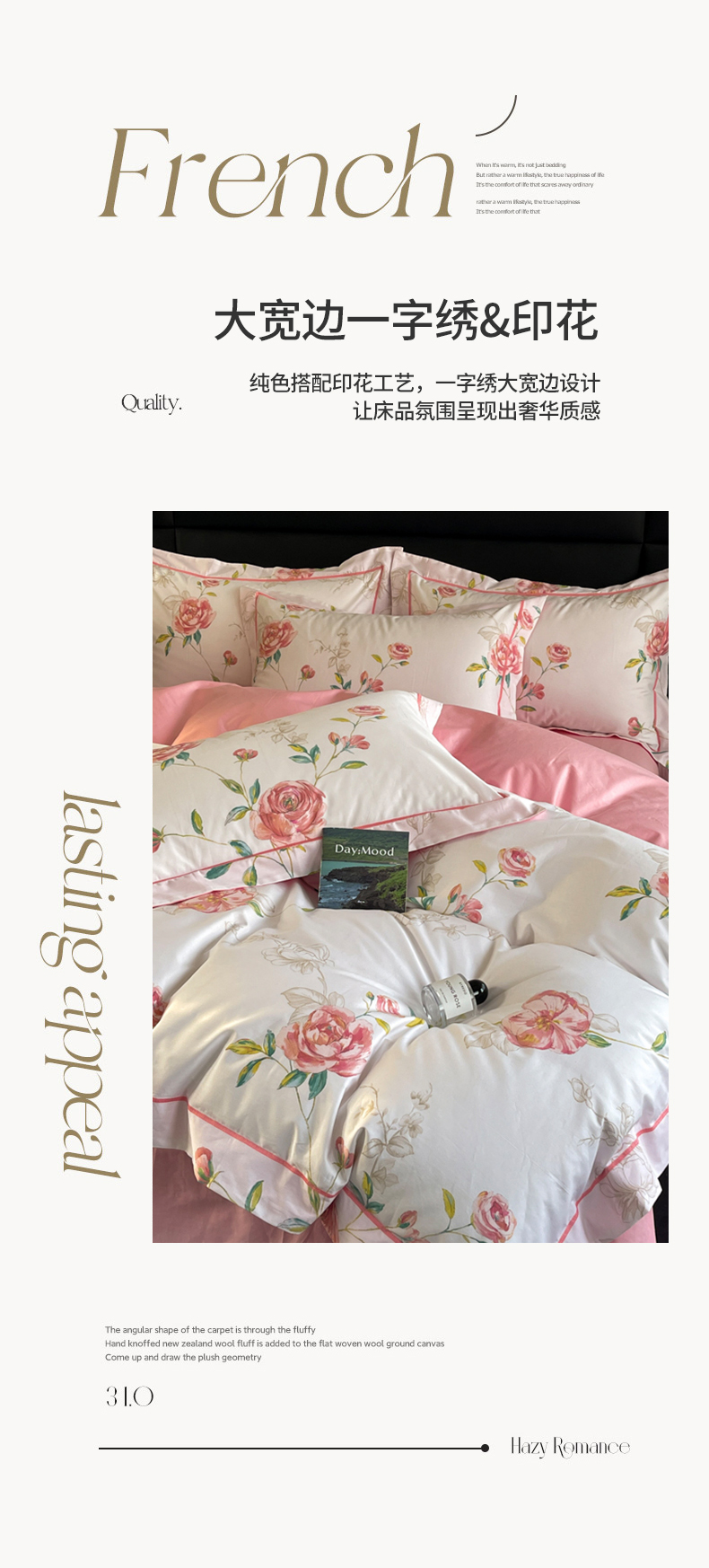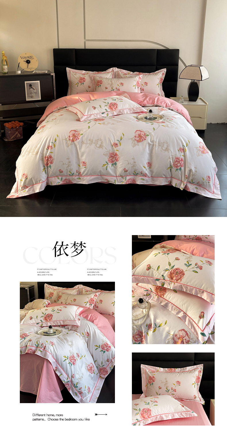 当前位置: 91家纺网 > 商品网购 > 床品套件 > 四件套 > 全棉普通四件套 > 7V 2024新款轻奢13376纯棉全棉喷气四件套 依梦