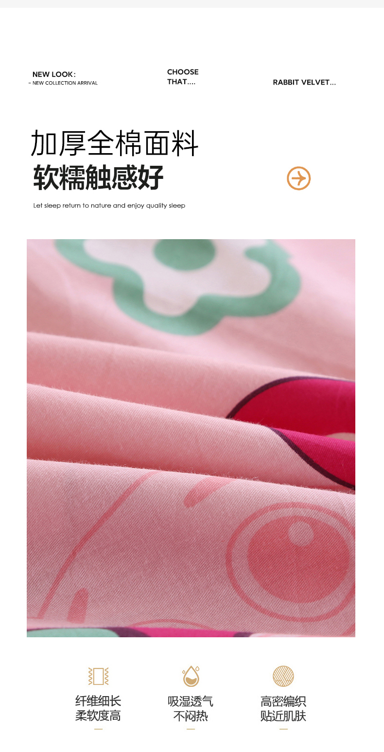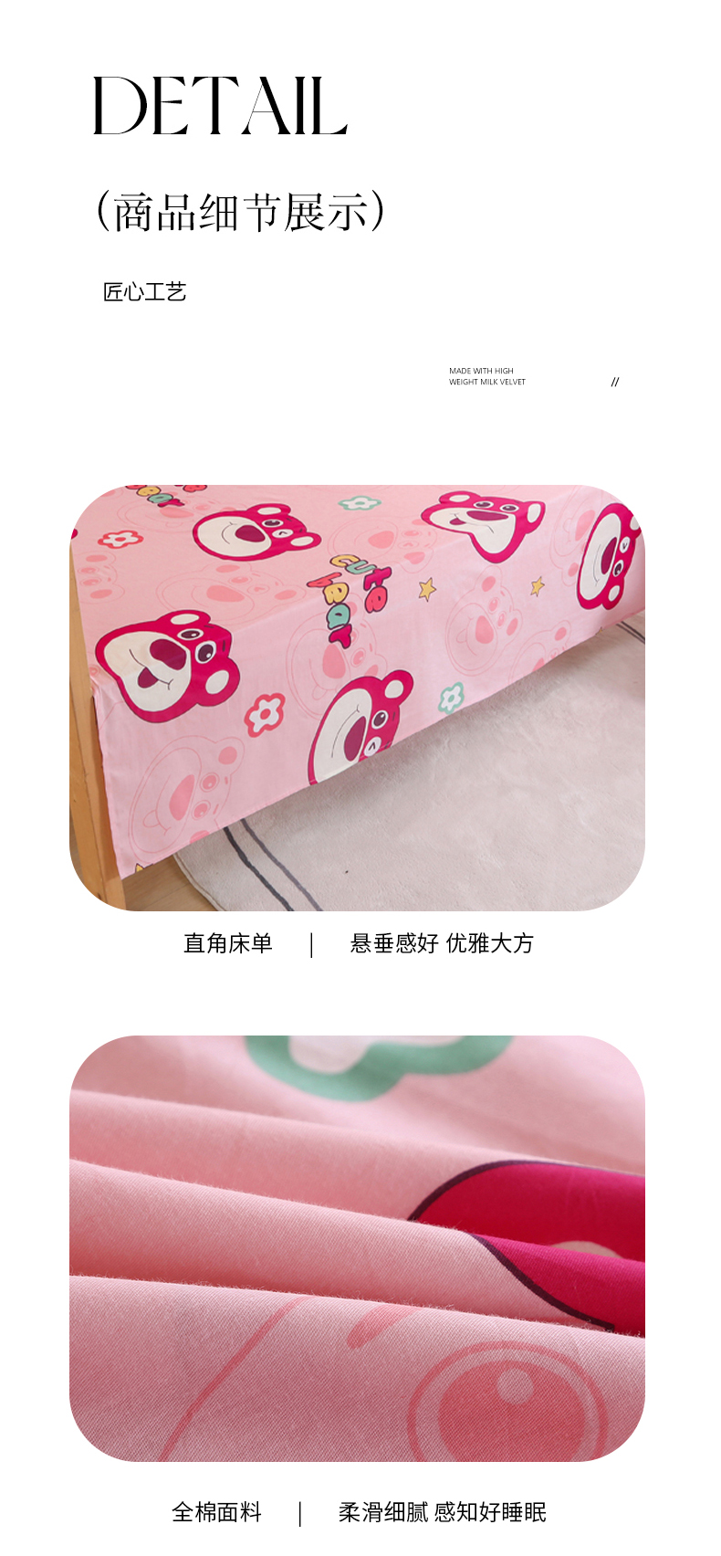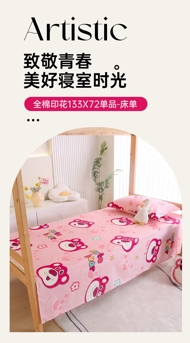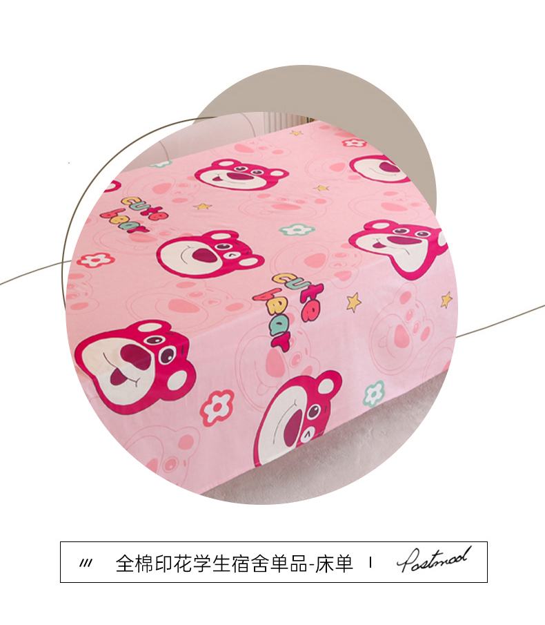商品名称:凯森家纺 2024新款全棉13372学生床单三件套直播代发 草莓熊