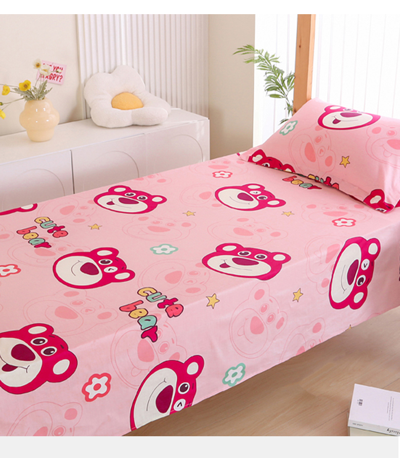 凯森家纺 2024新款全棉13372学生床单三件套直播代发 草莓熊