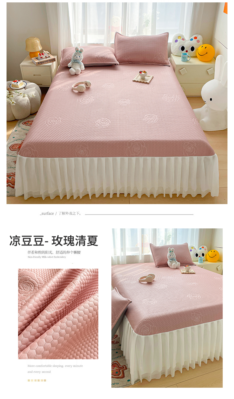 商品名称:兄弟坊 2024新款韩版PE冰豆豆床裙款凉席 凉豆豆- 玫瑰清夏