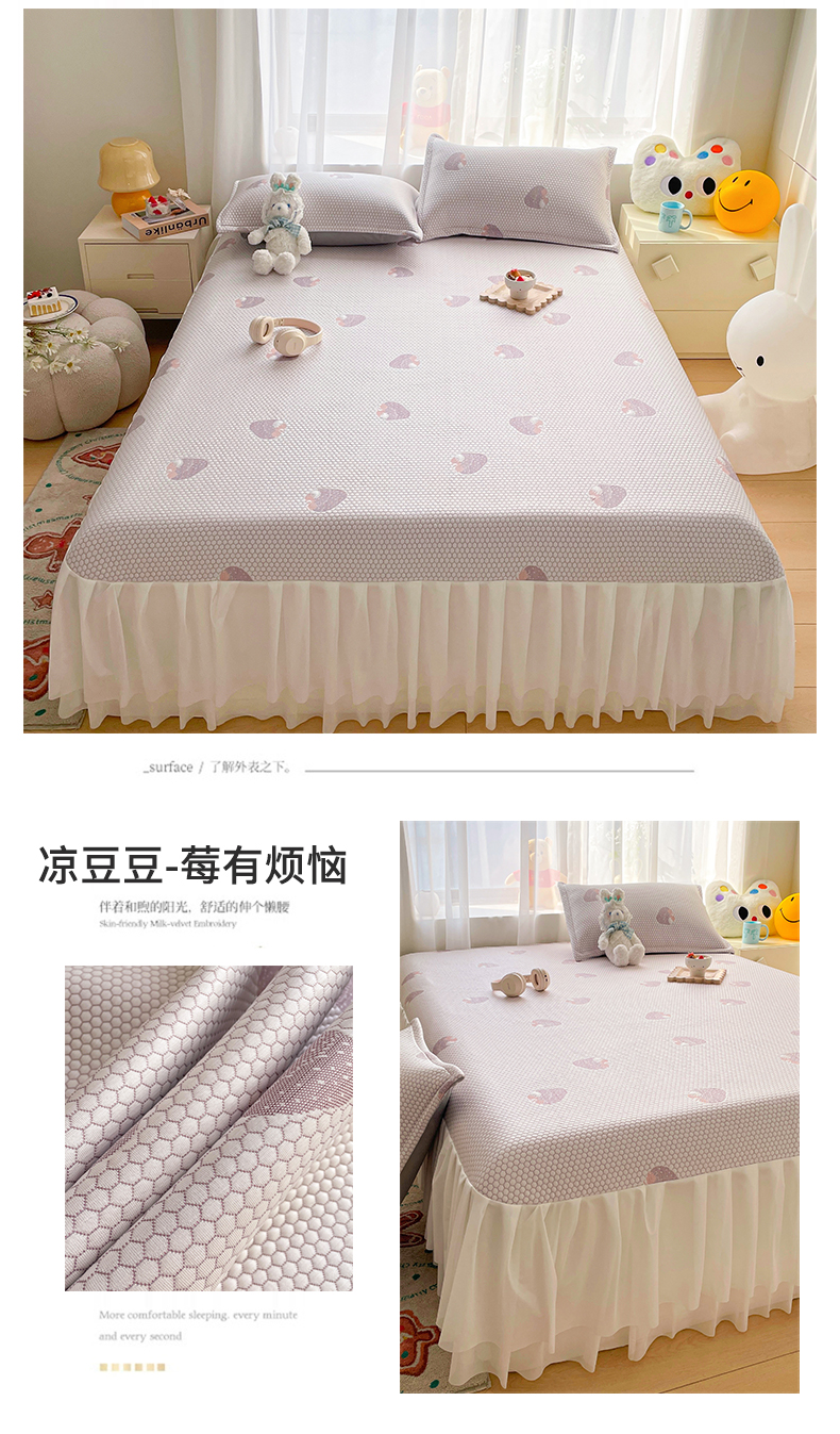 兄弟坊 2024新款韩版PE冰豆豆床裙款凉席 凉豆豆-莓有烦恼