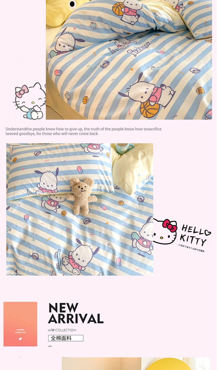 (总)三朵家纺 2024新款全消光三丽鸥印花牛奶绒系列四件套,爱心凯蒂,街舞库洛米,凯蒂公主,乐园KT,漫画帕恰,美好帕恰,美乐蒂格格,淘气帕恰,甜蜜公主KT,童心帕恰,艺术家库洛米,运动帕恰,字母帕恰