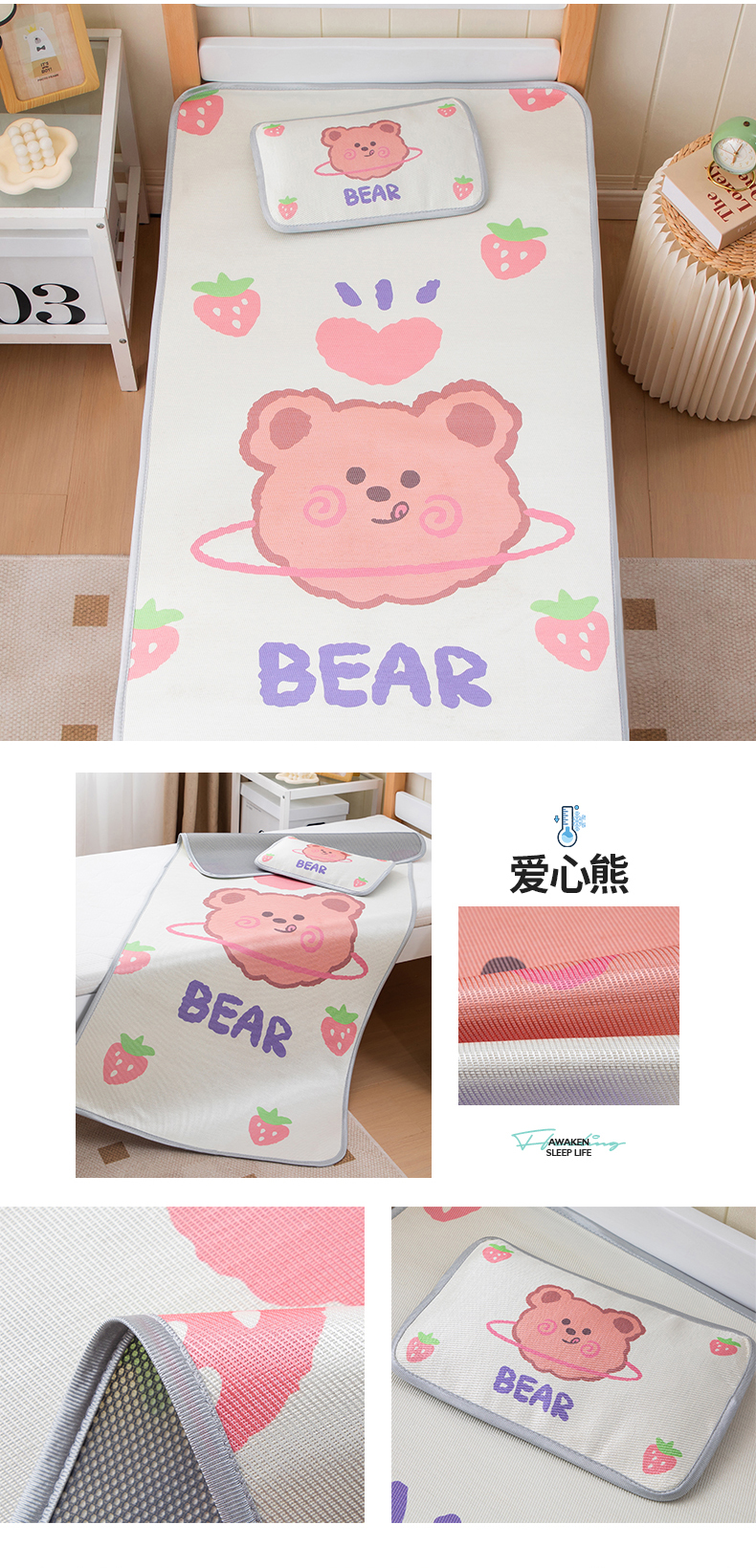 (总)欣品希家纺 2024新款A类学生款宿舍印花凉感丝凉席两件套,爱心兔子,粉蓝郁金香,绿格花,蘑菇熊,鸟语花香,袜子狗狗,夏天熊,竹子熊猫