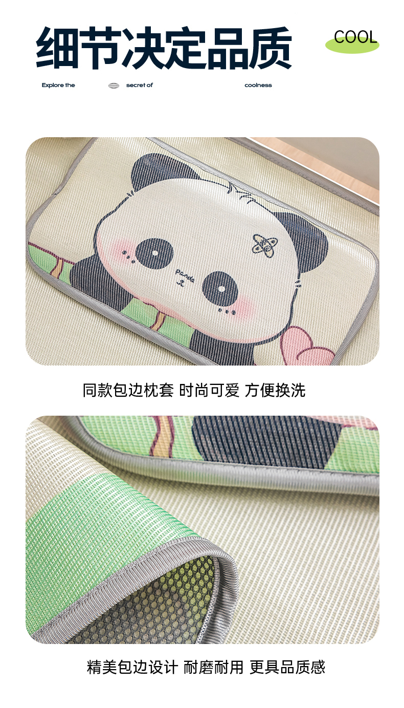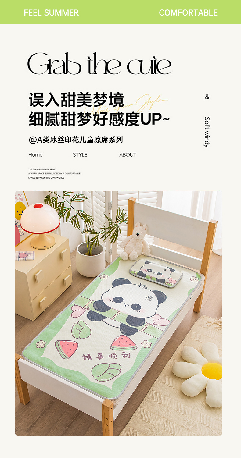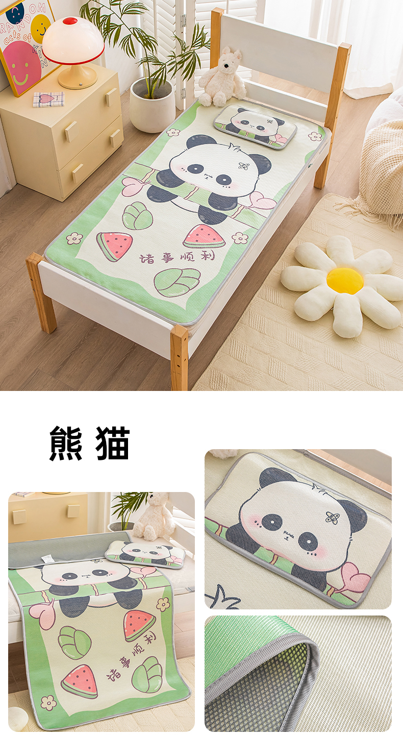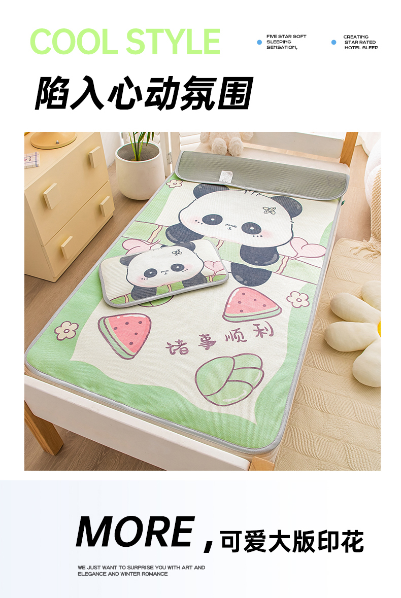 商品名称:欣品希家纺 2024新款A类冰丝印花儿童凉席三件套 熊猫