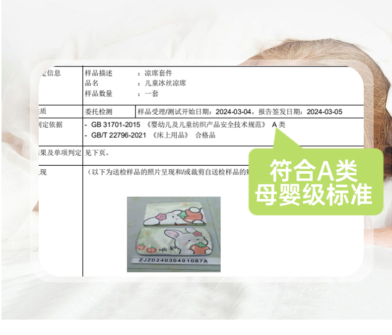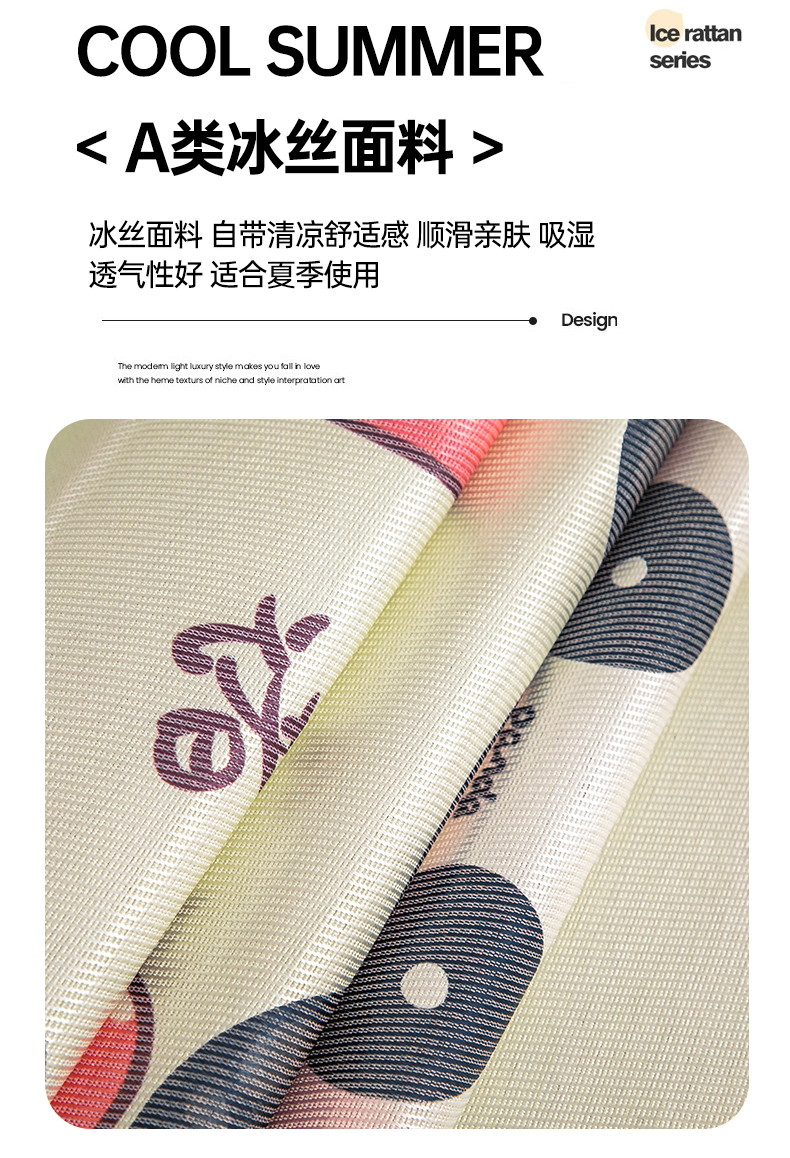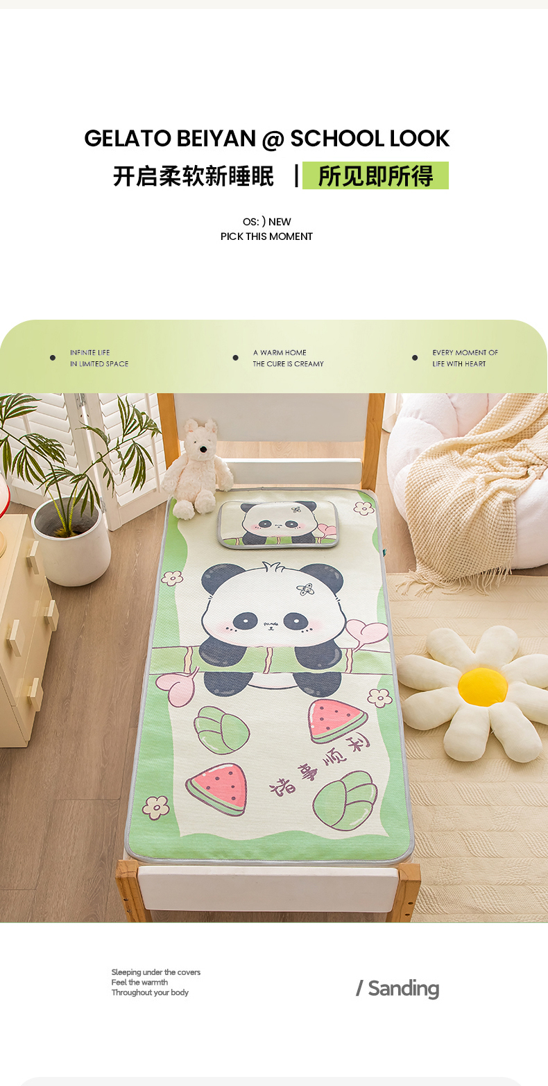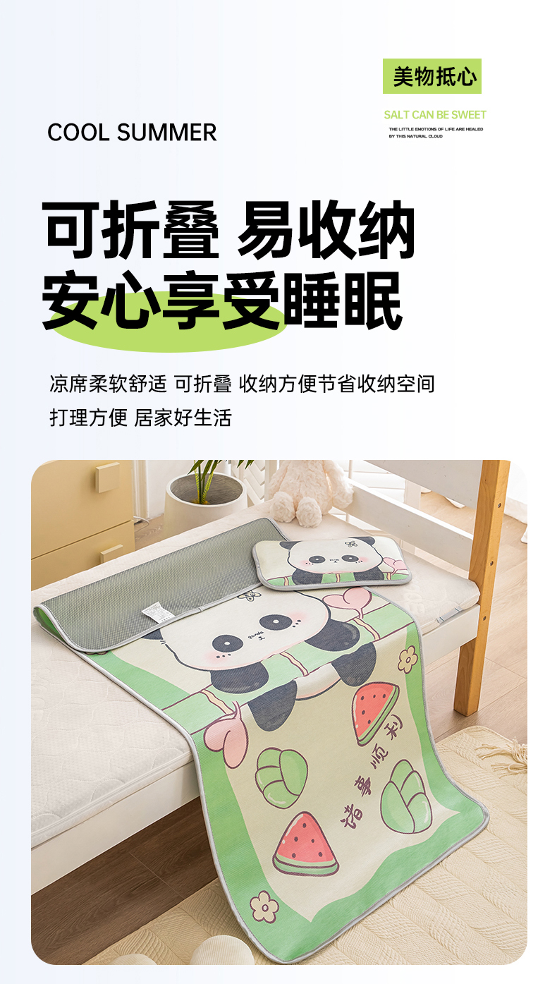 商品名称:欣品希家纺 2024新款A类冰丝印花儿童凉席三件套 熊猫