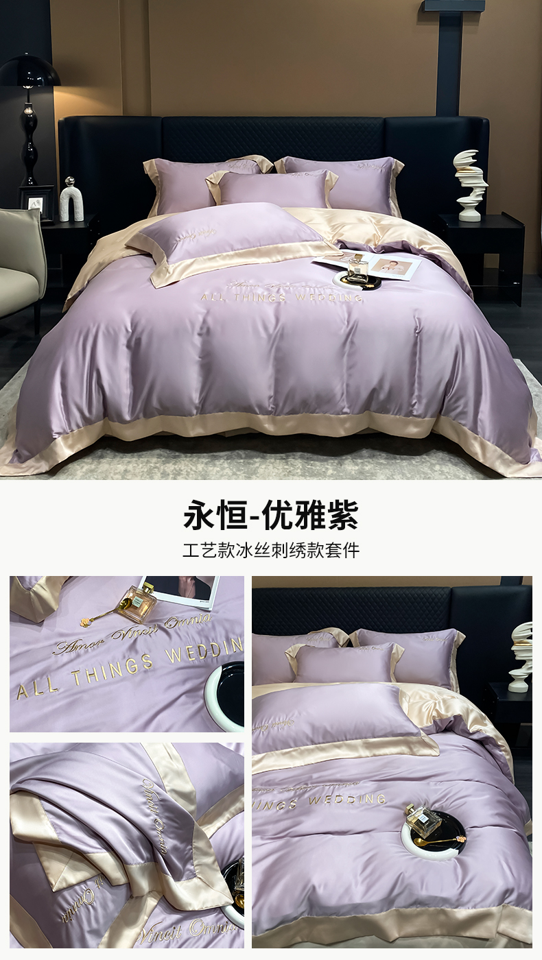 商品名称:优悦生活馆 2024新款永恒款冰丝刺绣四件套-风格二 永恒-优雅紫
