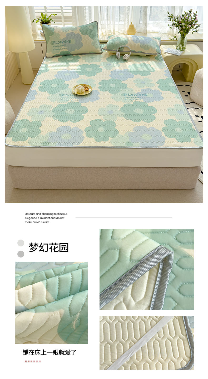 商品名称:伊人坊 2024新款A类凉感丝乳胶凉席三件套 梦幻花园