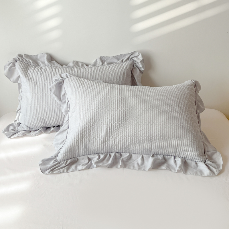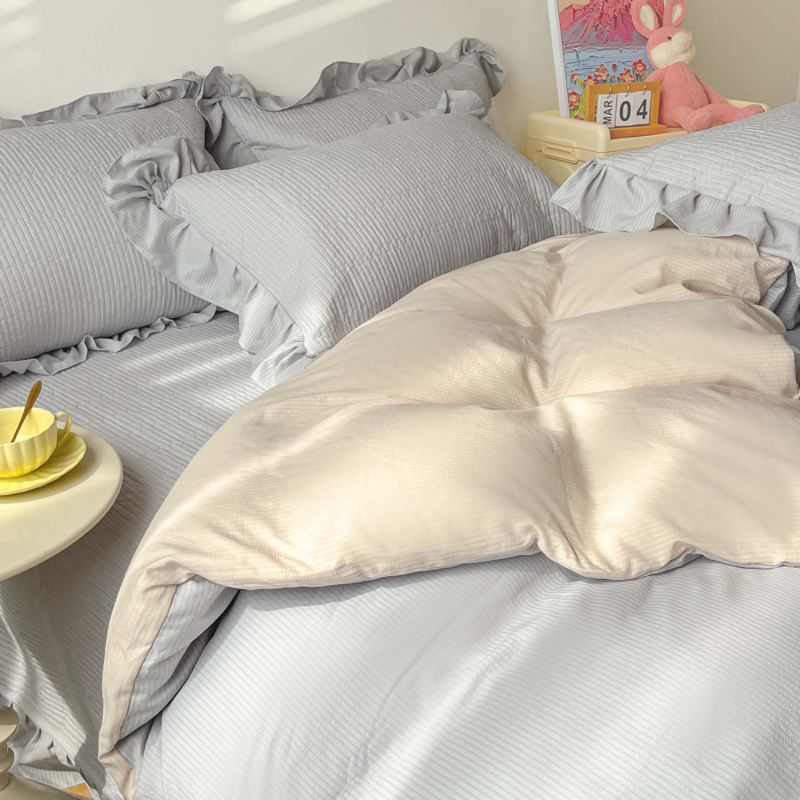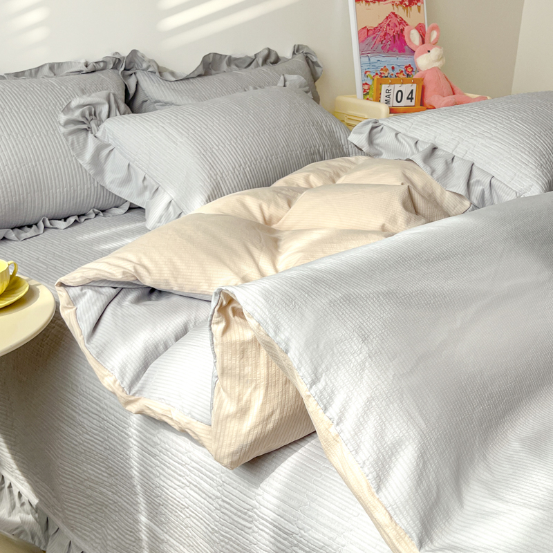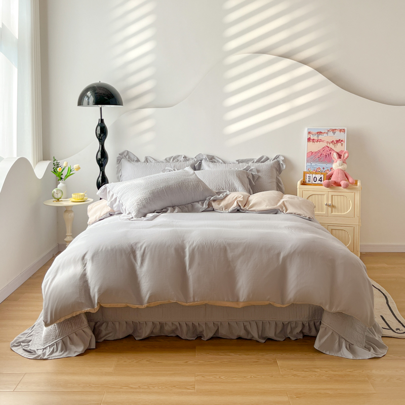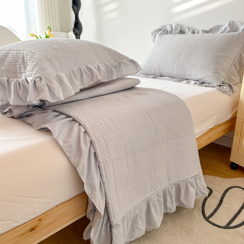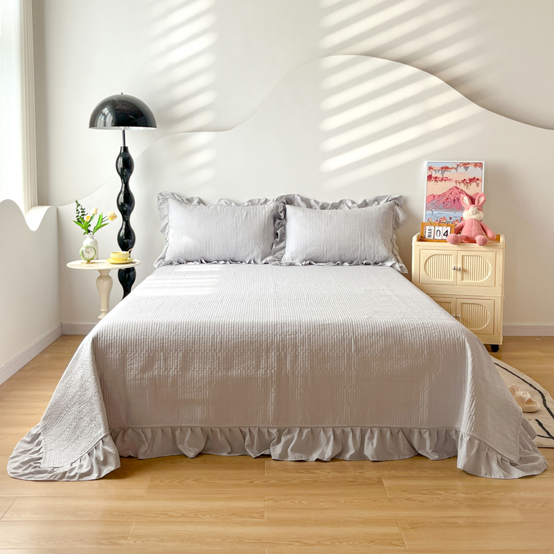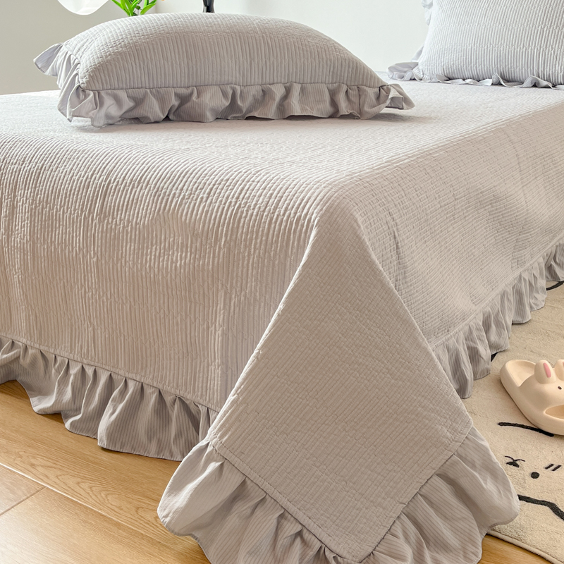 商品名称:子曰 2024新款印花素色花边床盖三件套四件套 淡雅灰
