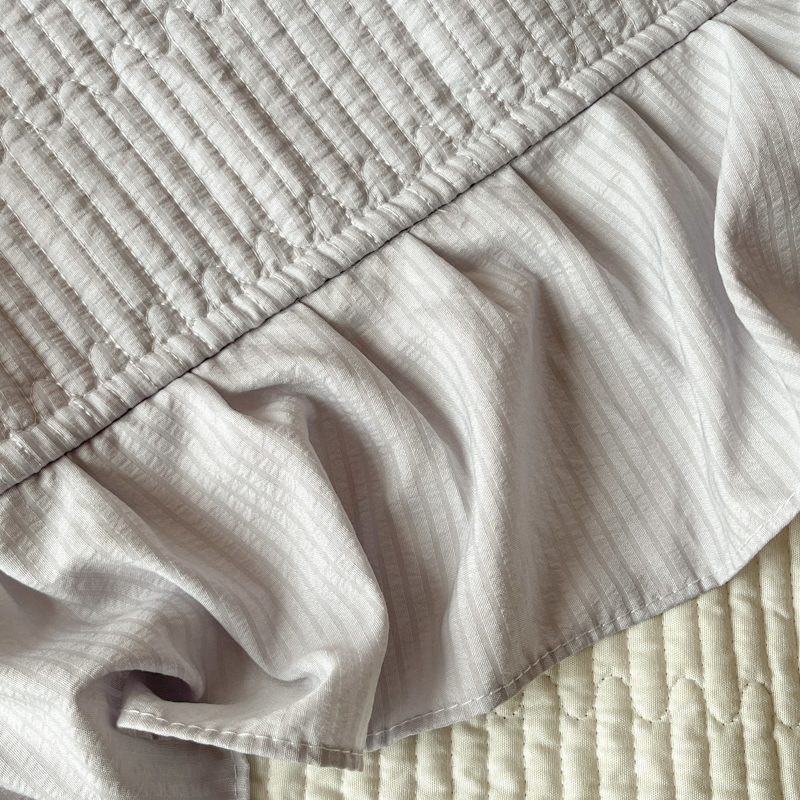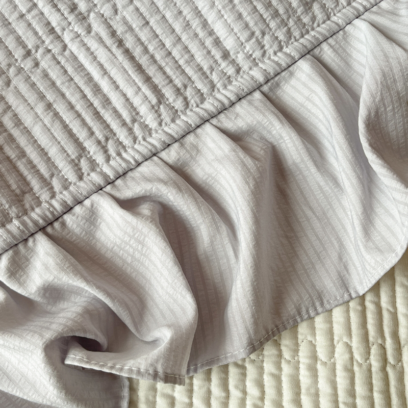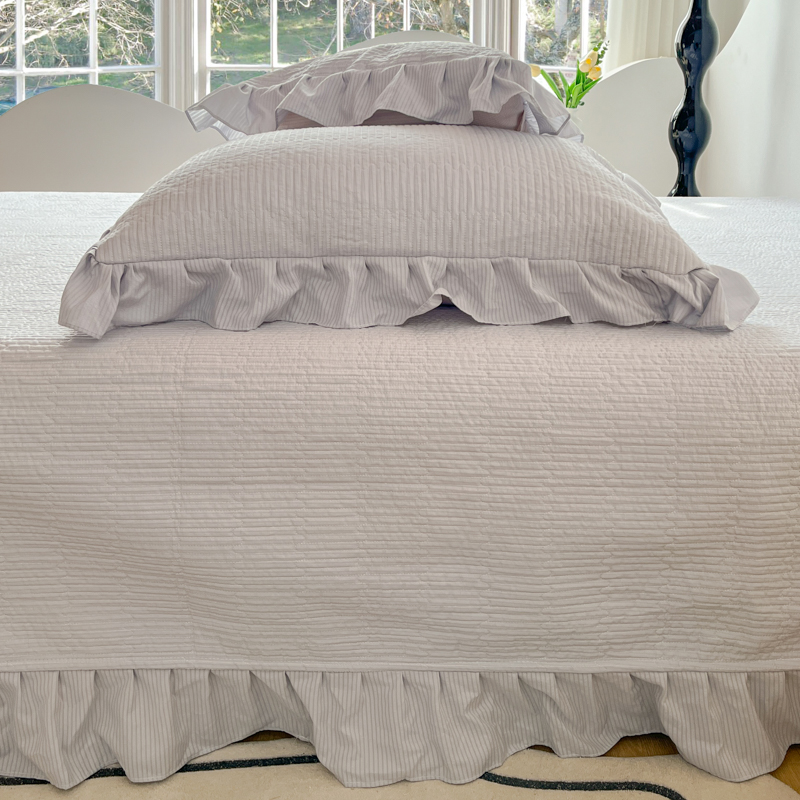 子曰 2024新款印花素色花边床盖三件套四件套 淡雅灰