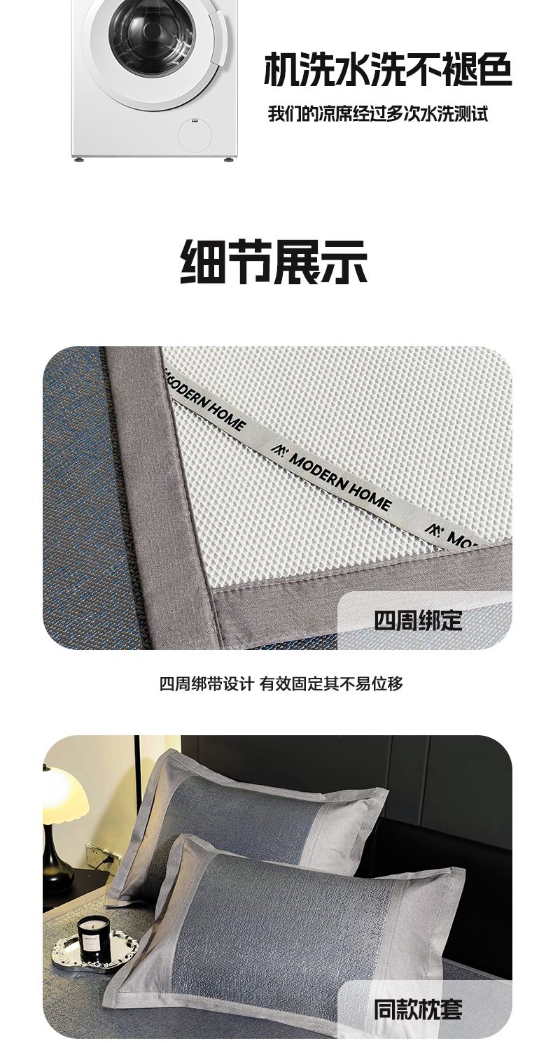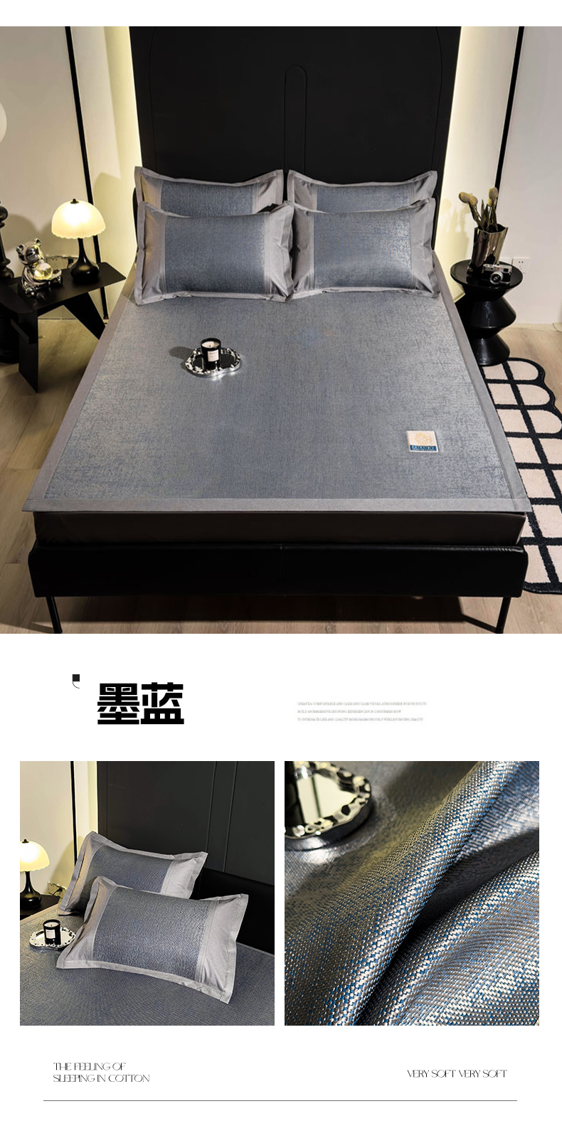 商品名称:全季家居 2024新款5A抗菌纯色现代肌理纹冰藤席 墨蓝