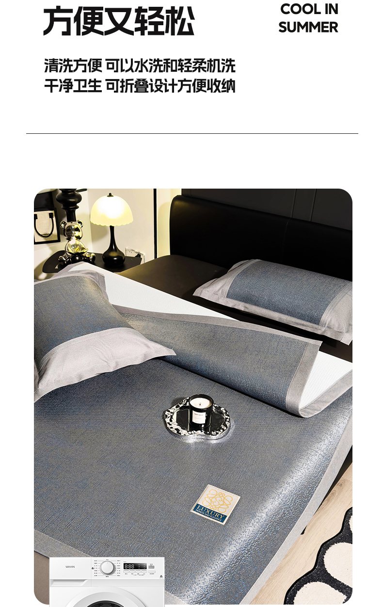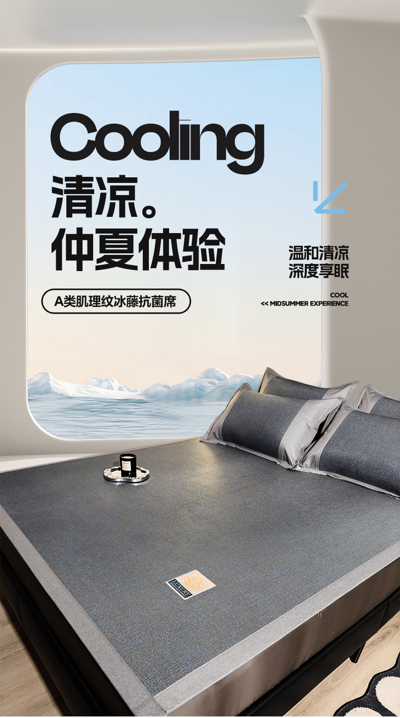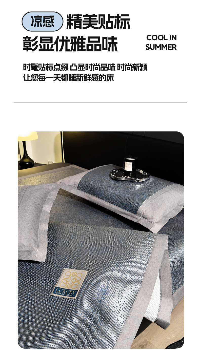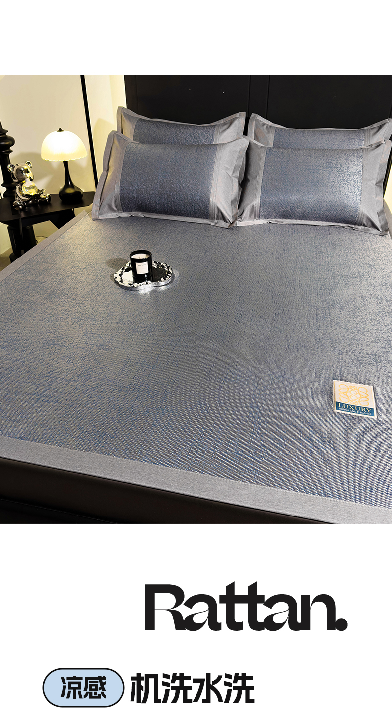 (总)全季家居 2023新款A类轻奢抗菌冰藤席,和意款-孔雀蓝,和意款-星际灰,和意款-薄荷绿,字母款-孔雀蓝,字母款-薄荷绿,字母款-星际灰