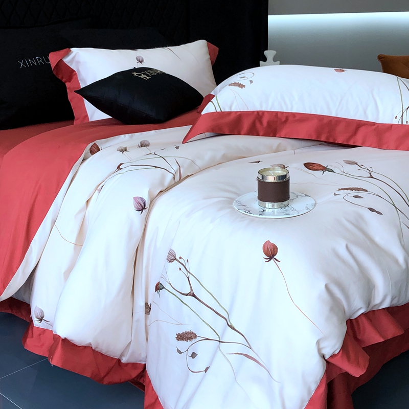 商品名称:馨蕊2024新款100S高奢简约活性数码印花系列四件套-棉玫瑰佳人 玫瑰佳人-砖红