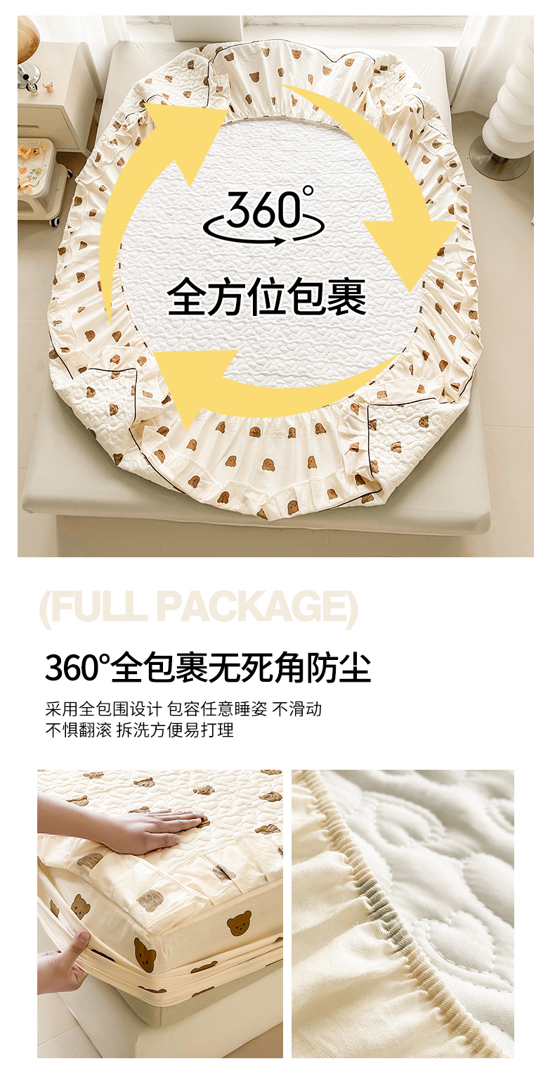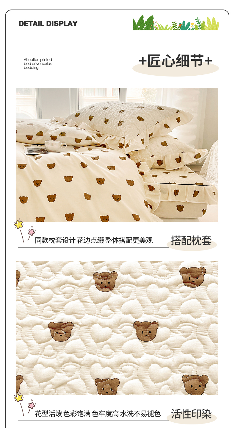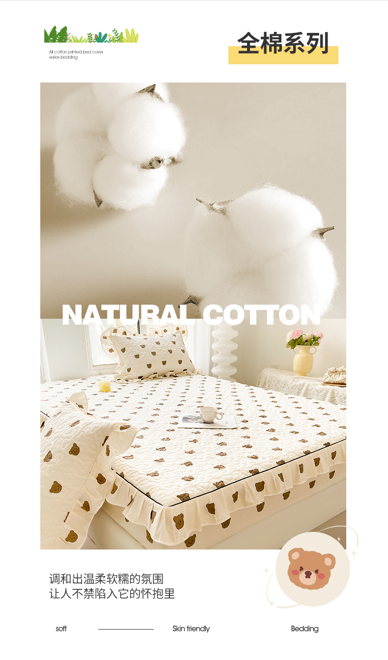 • 91家纺网 家纺一手货源 找家纺 宜凡家纺 2024新款全棉印花夹棉床笠三件套 小棕熊