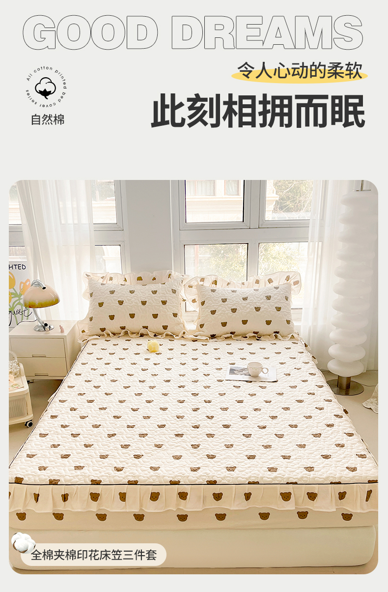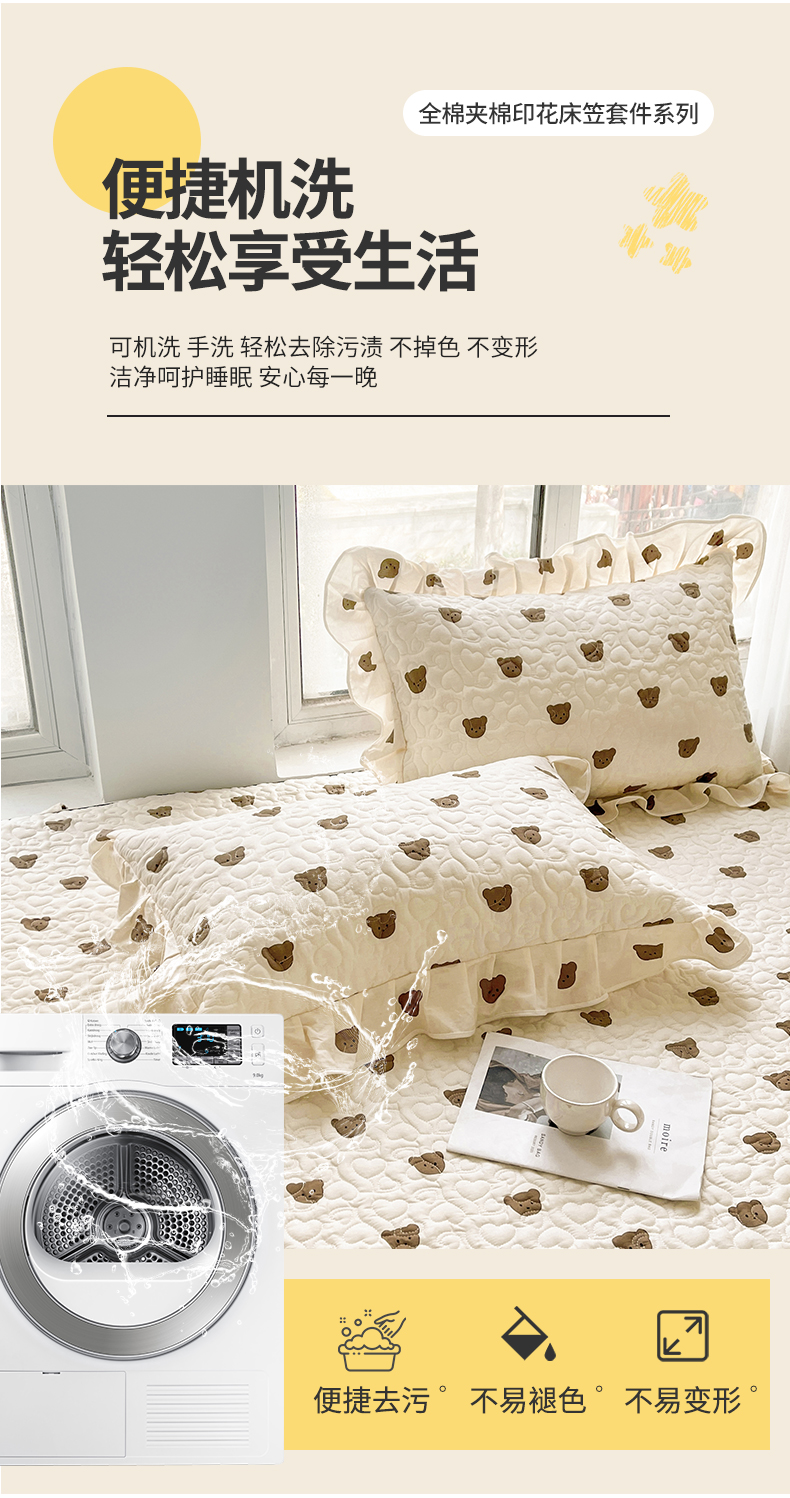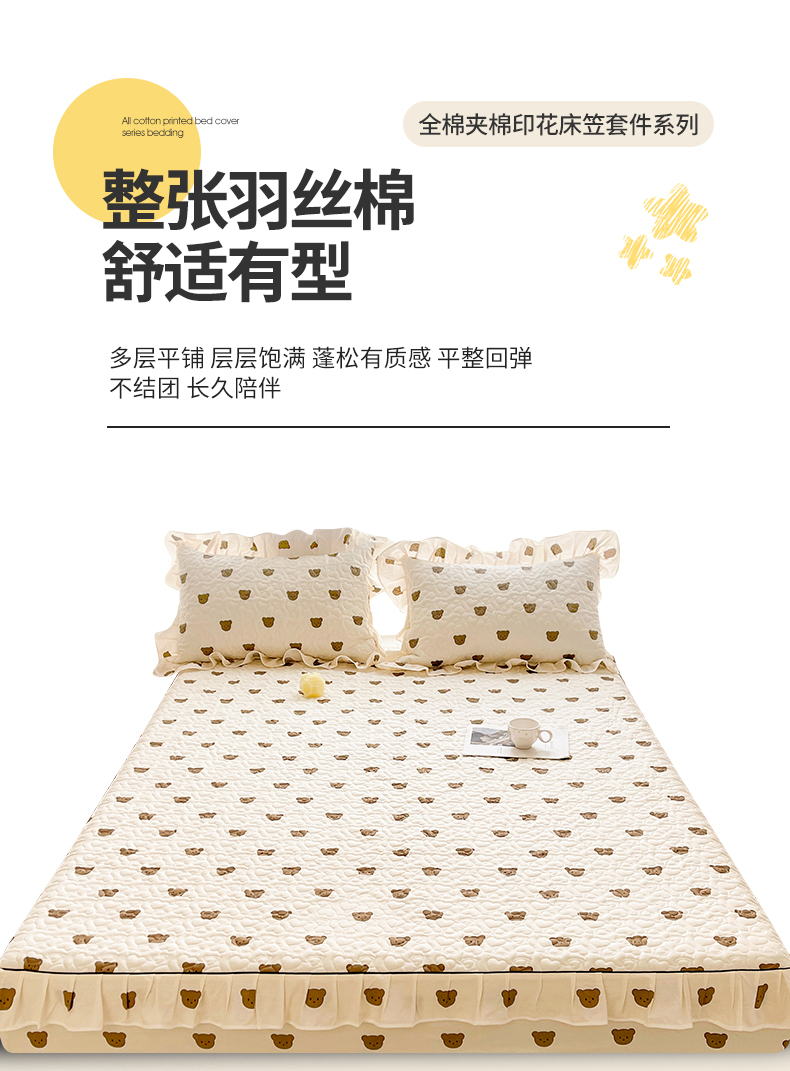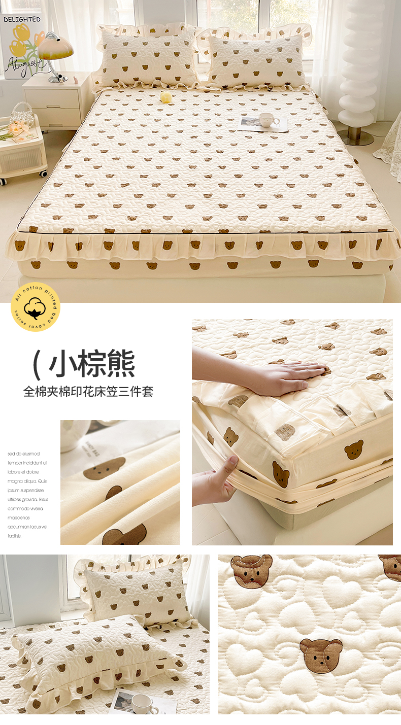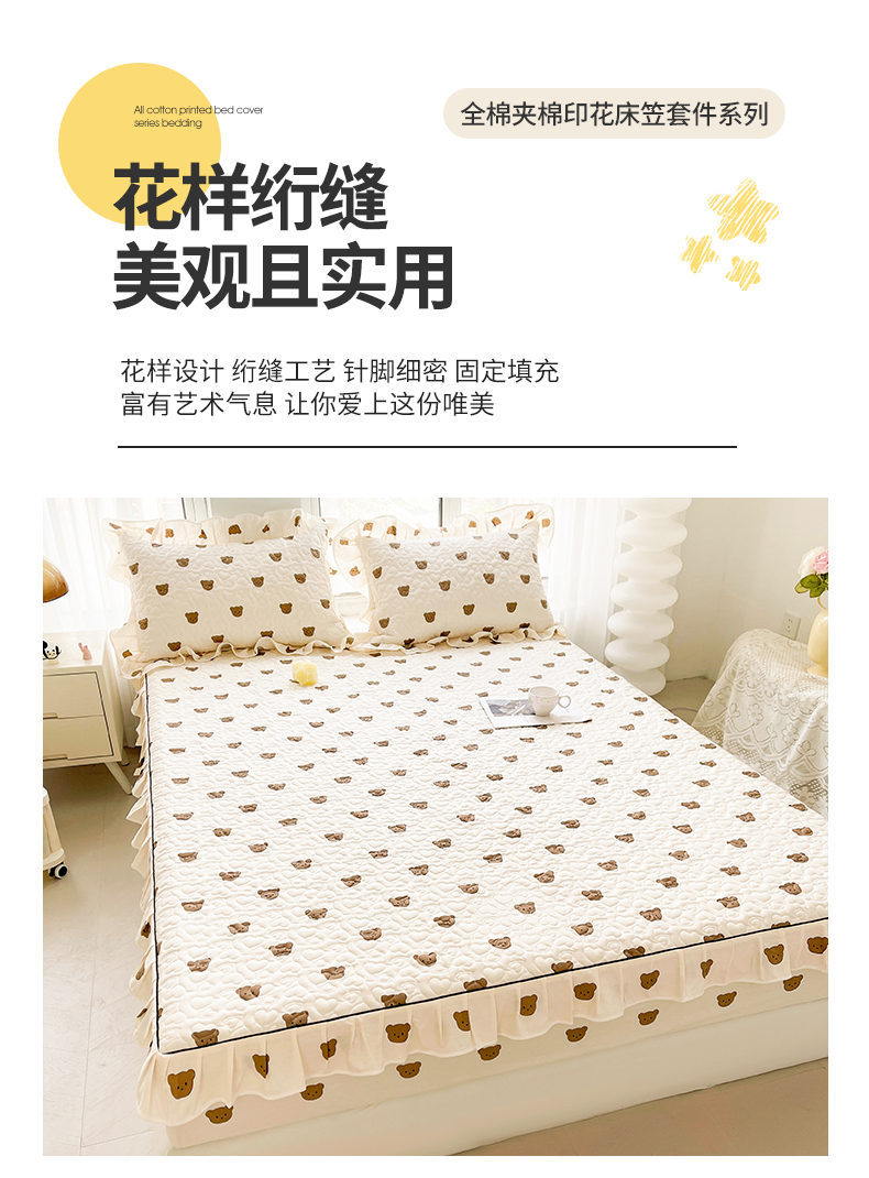 宜凡家纺 2024新款全棉印花夹棉床笠三件套 小棕熊