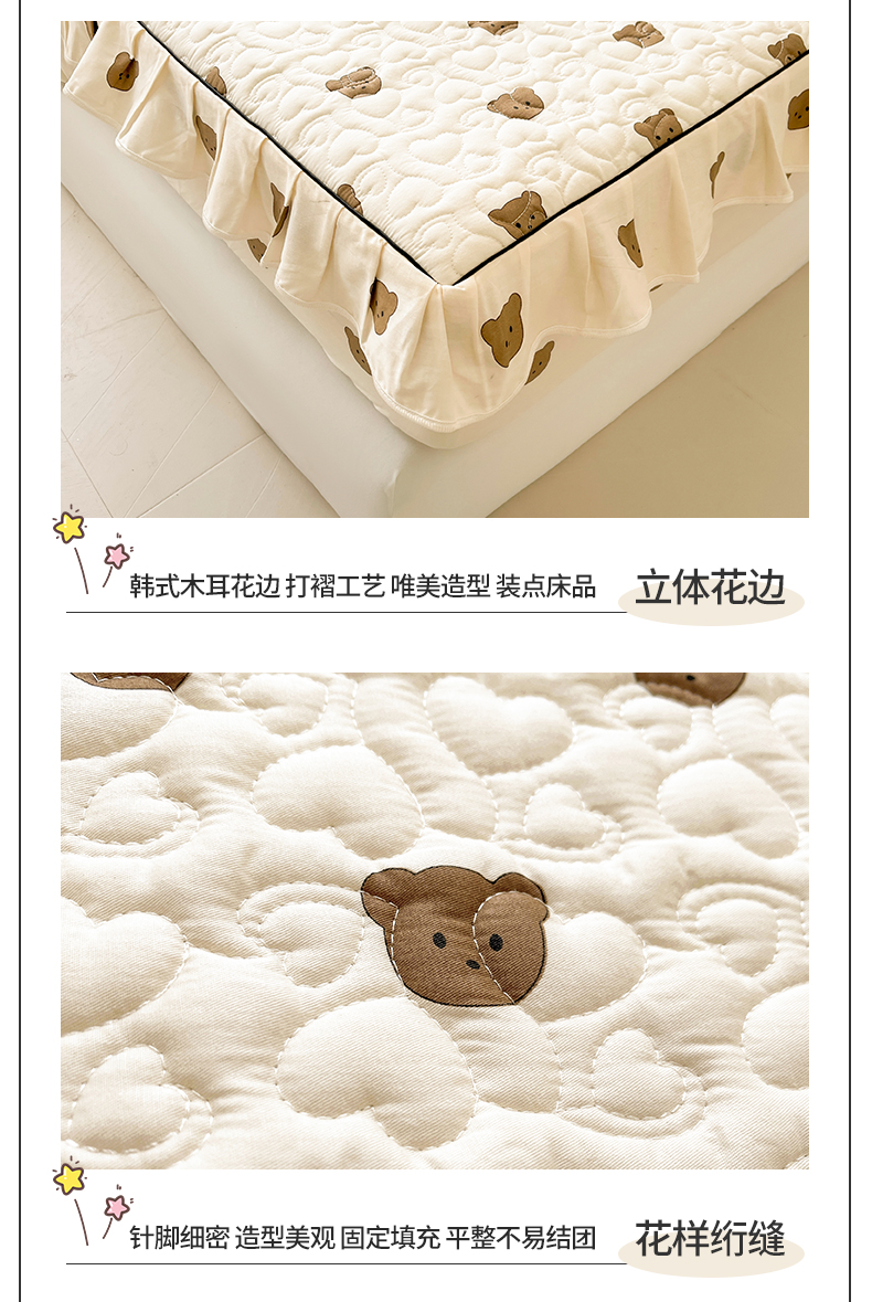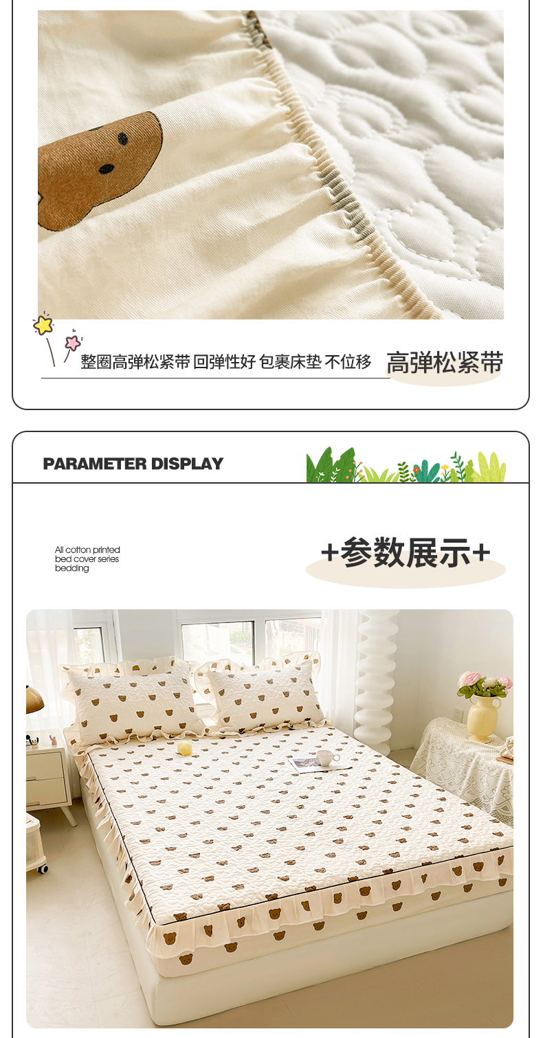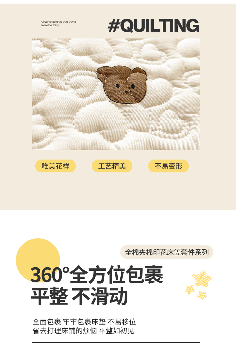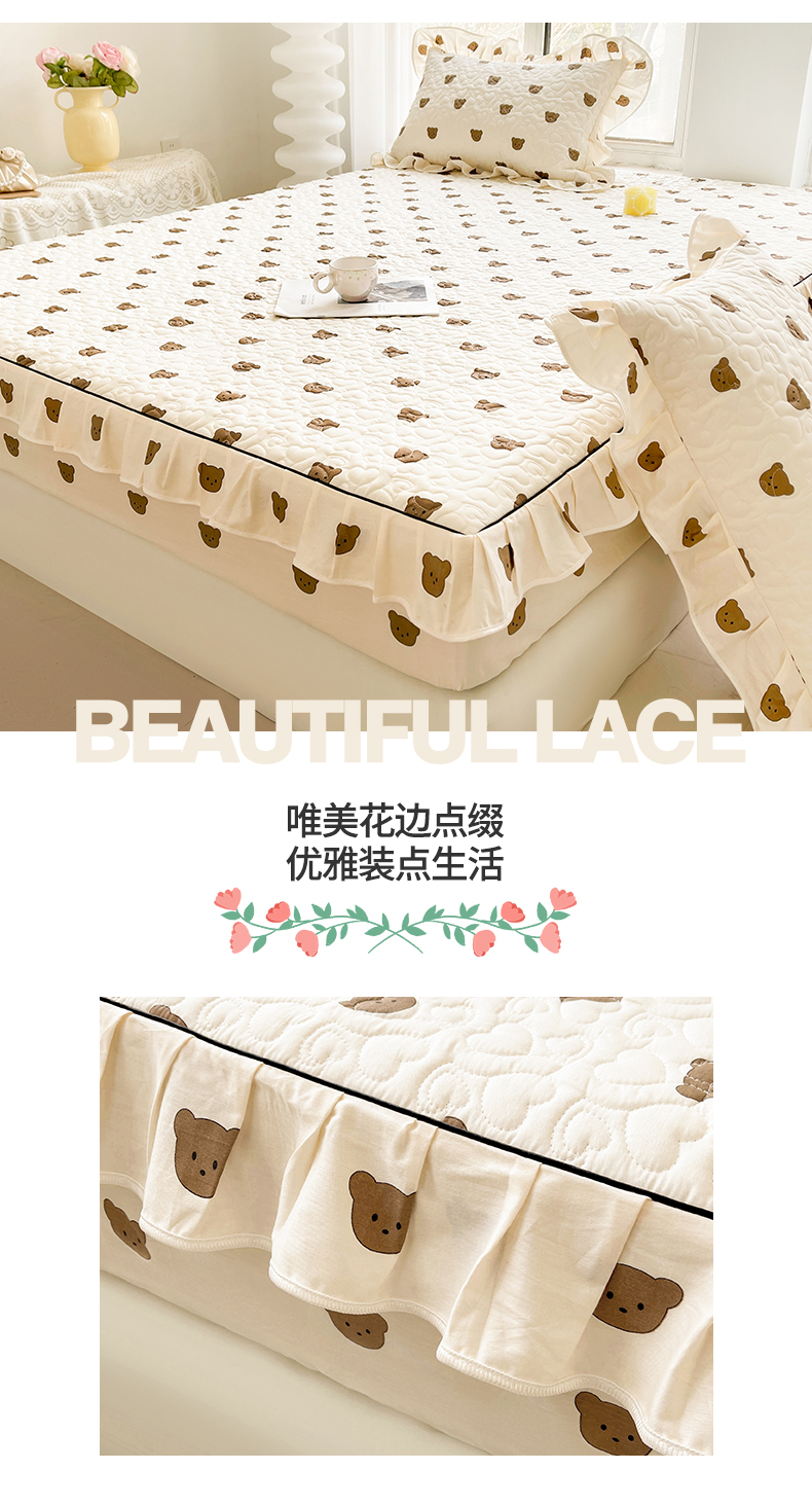 宜凡家纺 2024新款全棉印花夹棉床笠三件套 小棕熊