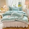 唐人居 2025新款水洗棉麻亲肤蕾丝花边四件套 小确幸-水兰