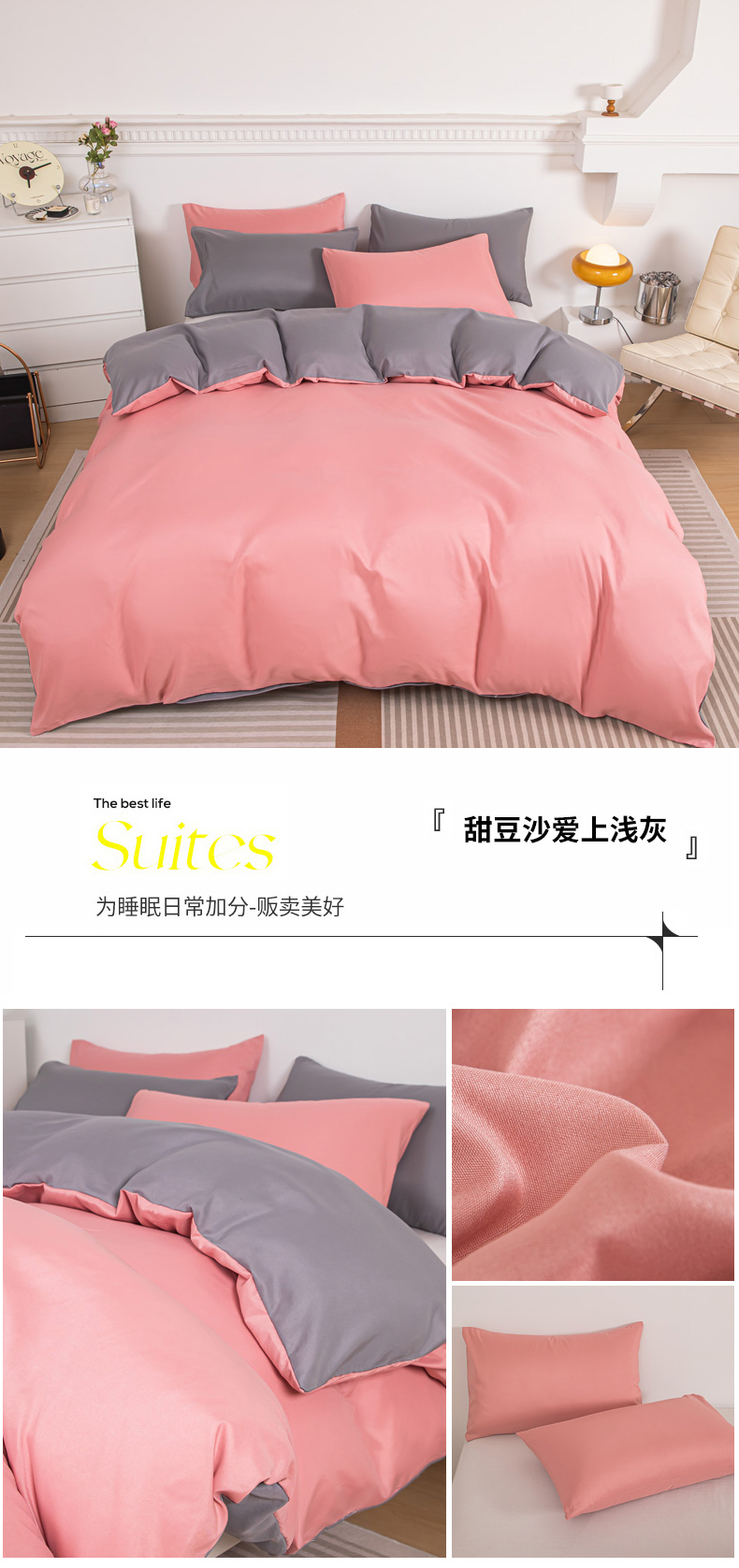 当前位置: 91家纺网 > 商品网购 > 床品套件 > 四件套 > 其它四件套 > 莎臣豹 2025新款水洗棉磨毛纯色双拼简约风撞色四件套 甜豆沙爱上浅灰