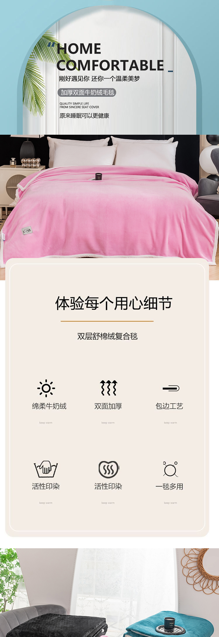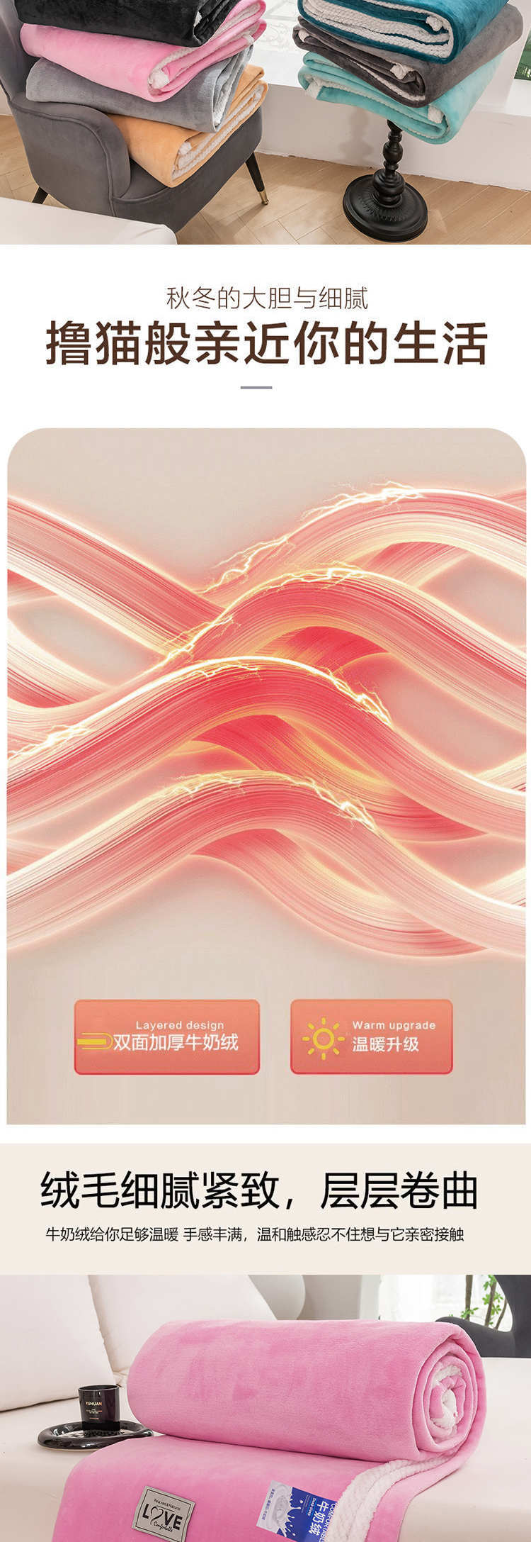 商品名称:凤凰林毛毯 2024新款加厚亲肤牛奶绒毛毯 芭比粉
