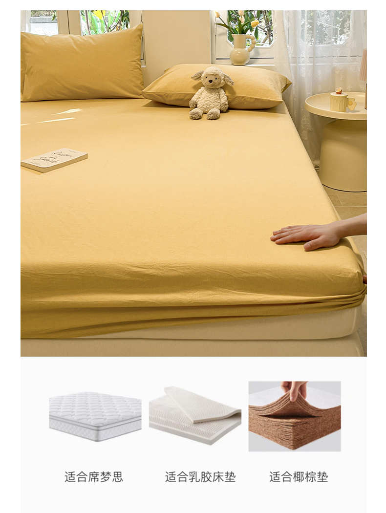 (总)蓝邻家纺 2025新款全棉纯棉磨毛简约系列单床笠,白桃麻薯,冰海蓝,豆沙,蓝莓,奶油黄,浅灰,青绿,清新绿,水蓝,水云蓝,桃花粉